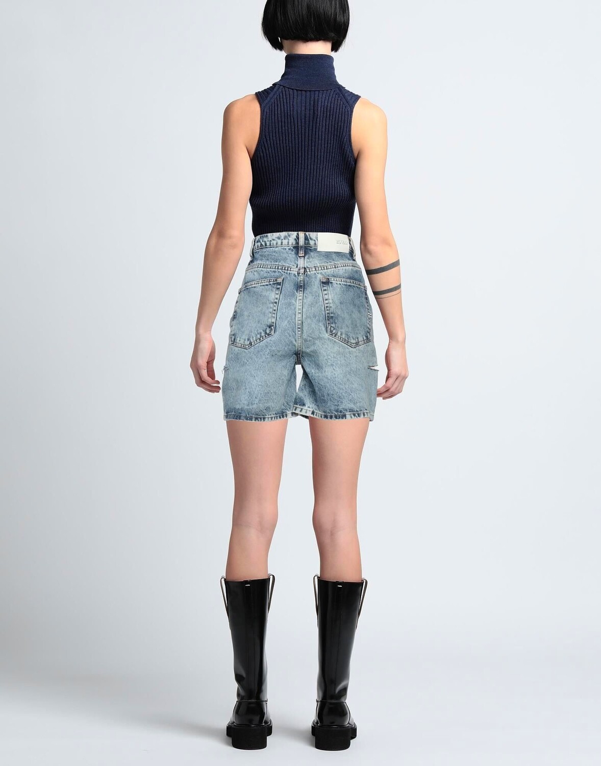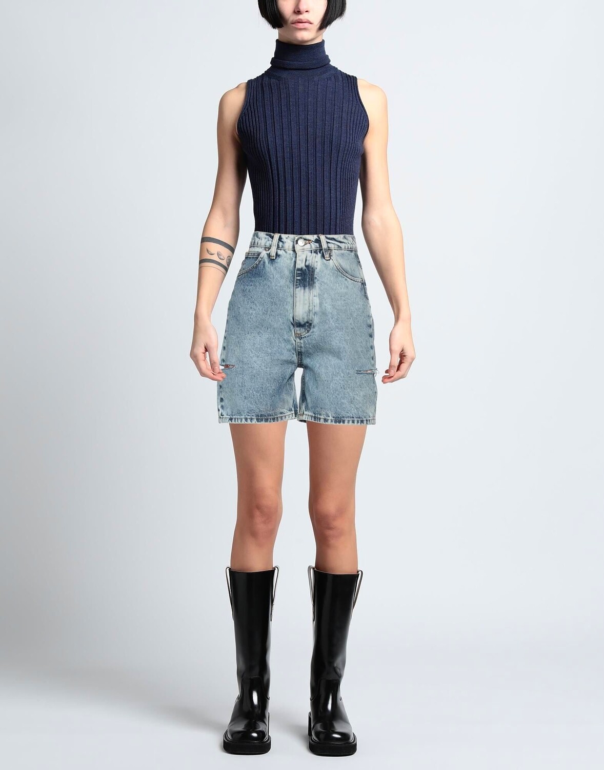 Джинсовая ткань, выцветший, логотип бренда, одноцветное изделие, средняя степень стирки, завышенная талия, стандартный крой, застежка-молния, 1 пуговица, шорты