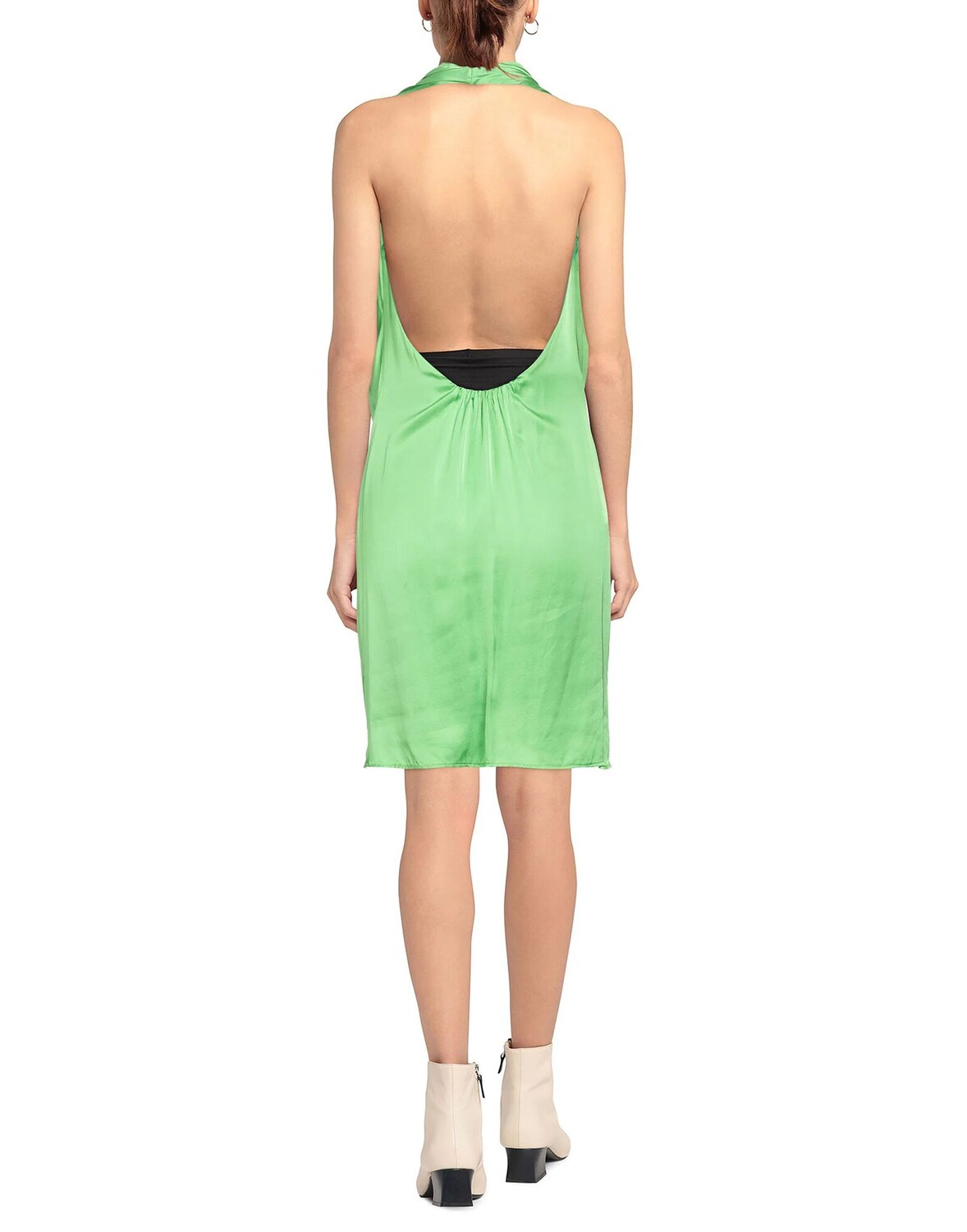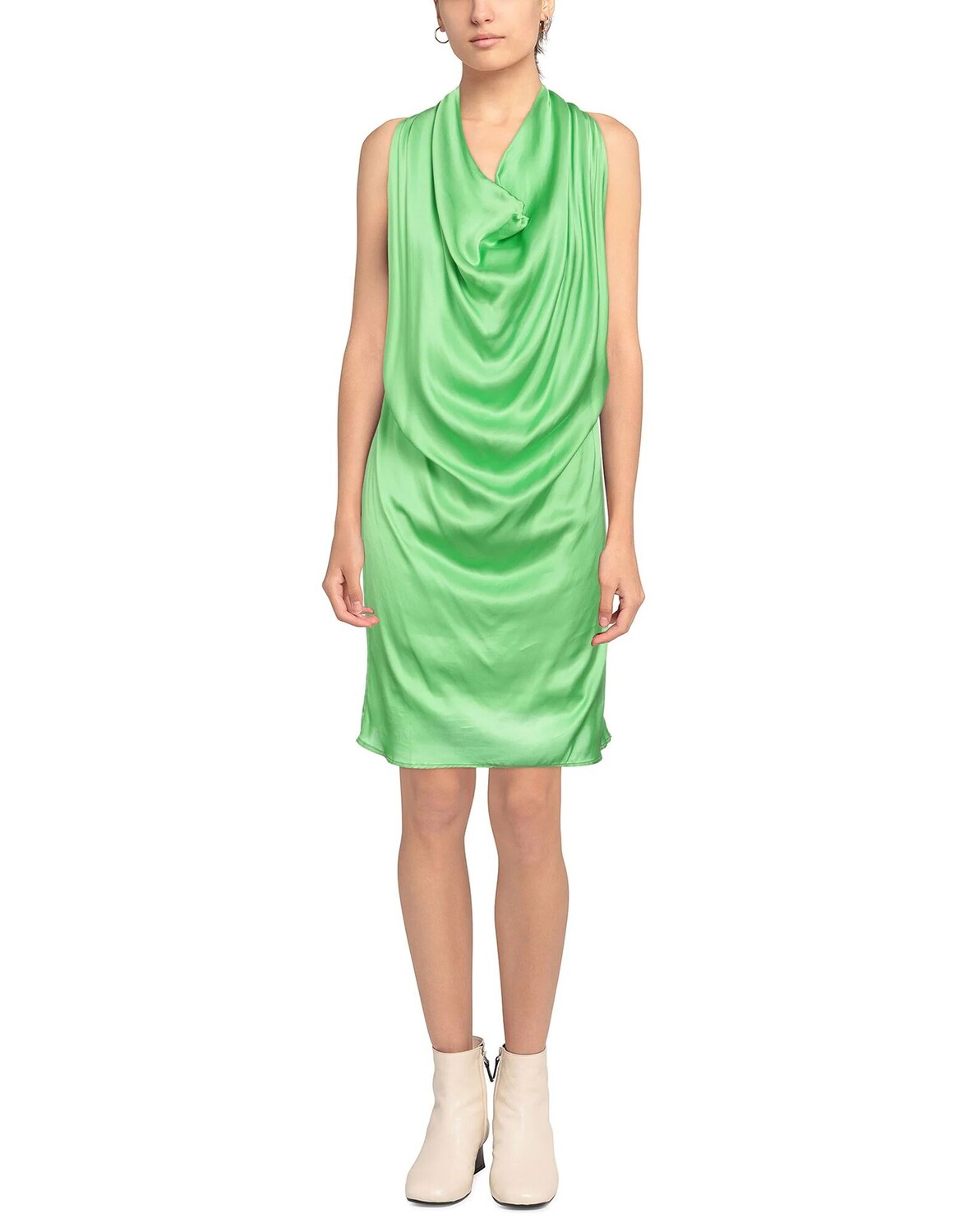 Атлас, без аппликаций, однотонный цвет, воротник с драпировкой, без рукавов, на подкладке, без карманов, платье