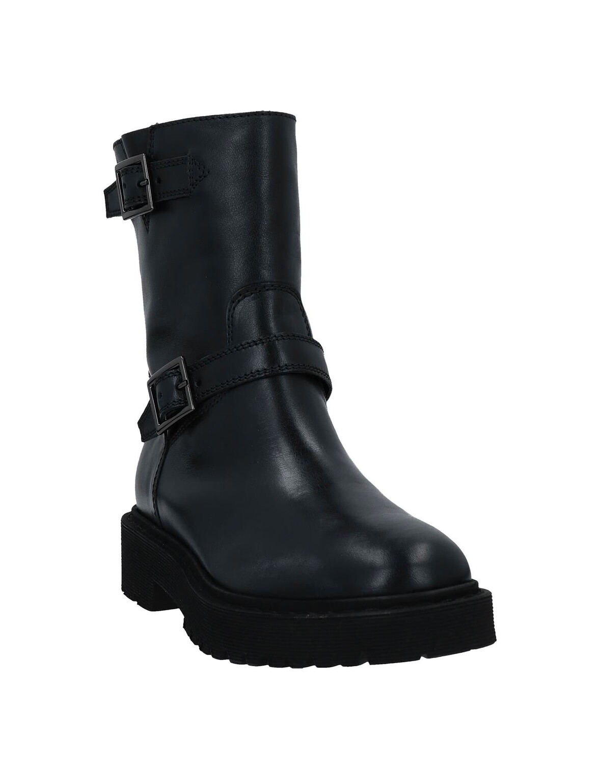 Байкерские ботильоны, одноцветное изделие, детали из ремешков, кожаная подкладка, закругленный носок, квадратный каблук, резиновая подошва с тиснением, содержит нетекстильные части животного происхождения
