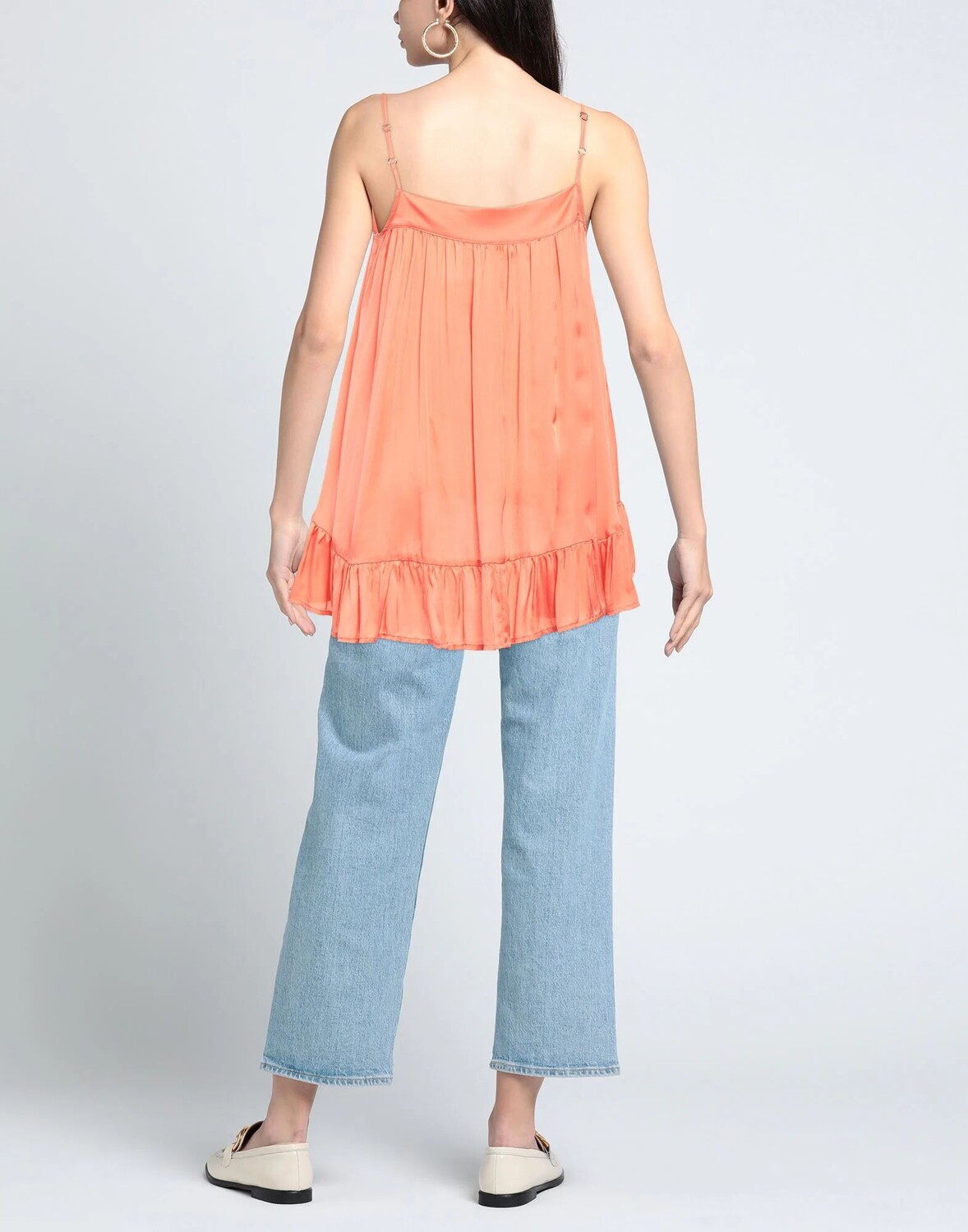 Сатин, без аппликаций, одноцветное изделие, овальный вырез, без рукавов, без карманов, химчистка, нельзя отбеливать, нельзя сушить в стиральной машине, топ с баской