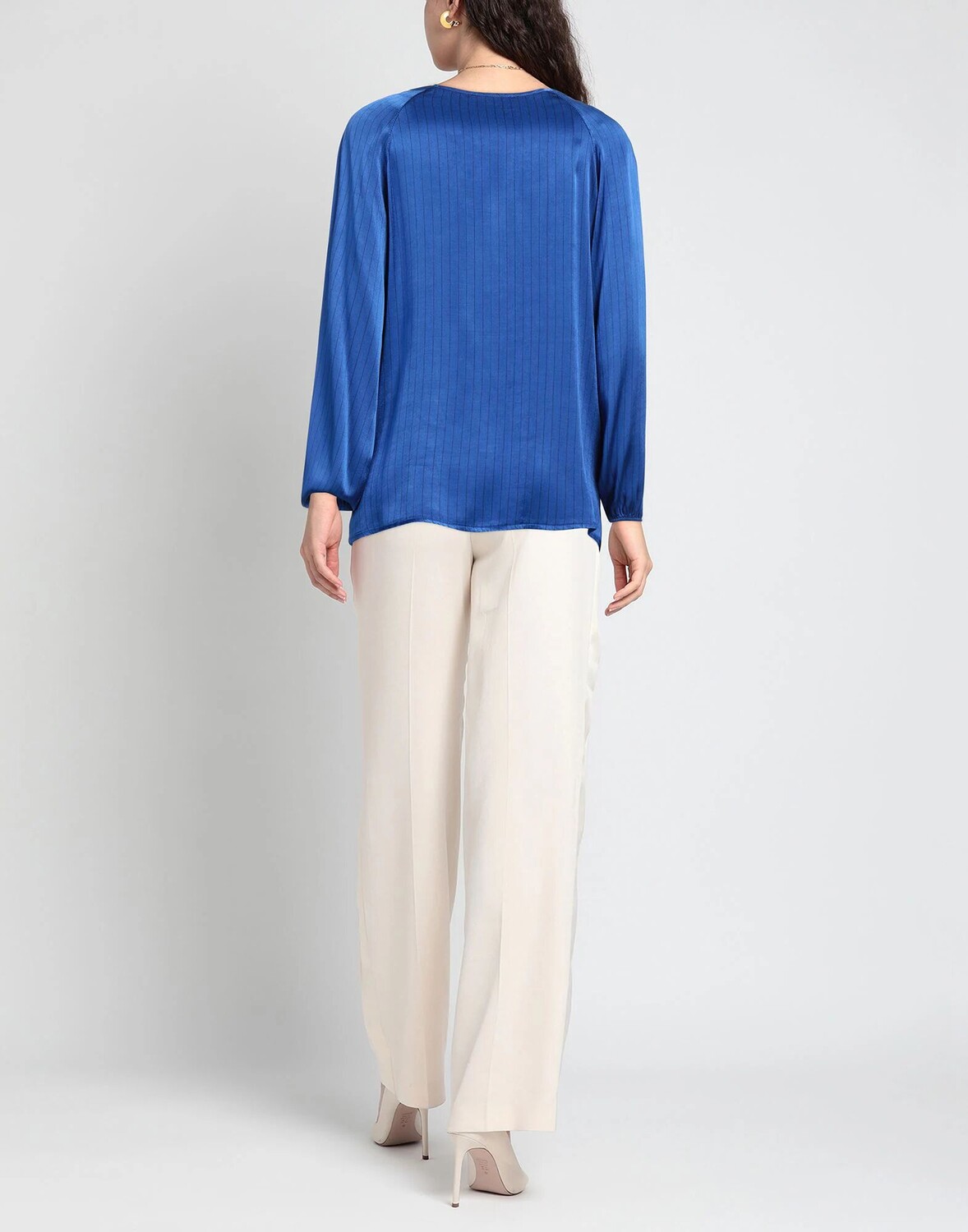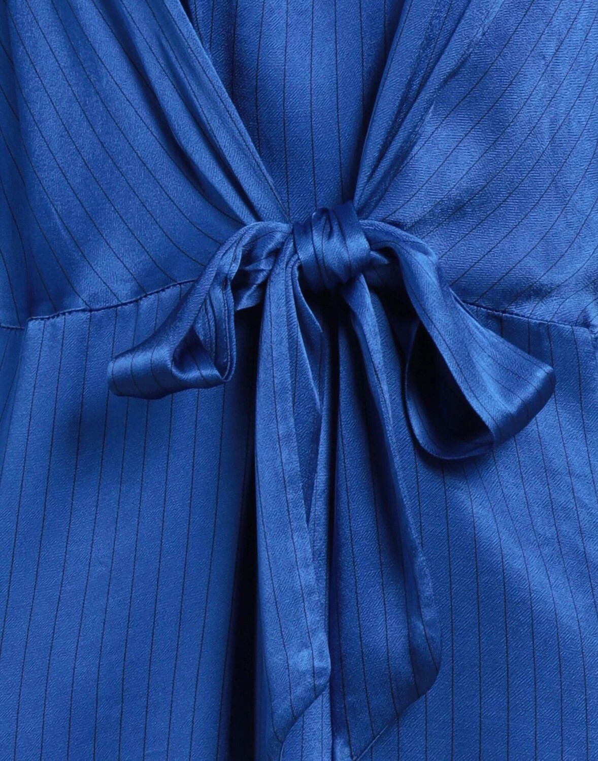 Креп, бантик, в полоску, круглый вырез, длинные рукава, манжеты на резинке, без карманов, стрейч, верх