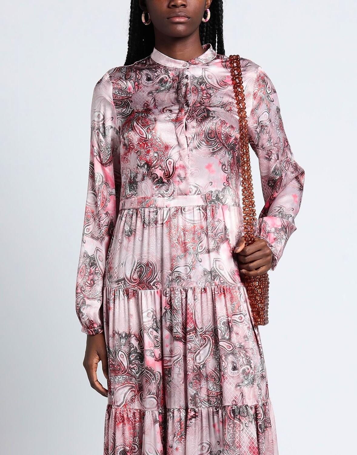 Атлас, оборки, принт «пейсли», длинные рукава, круглый воротник, манжеты на пуговицах, пуговицы, без карманов, без подкладки, платье-рубашка