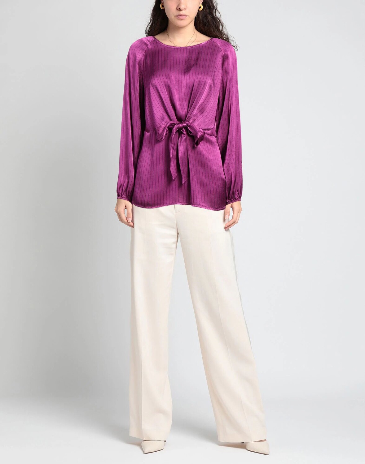Креп, бантик, в полоску, круглый вырез, длинные рукава, манжеты на резинке, без карманов, стрейч, верх