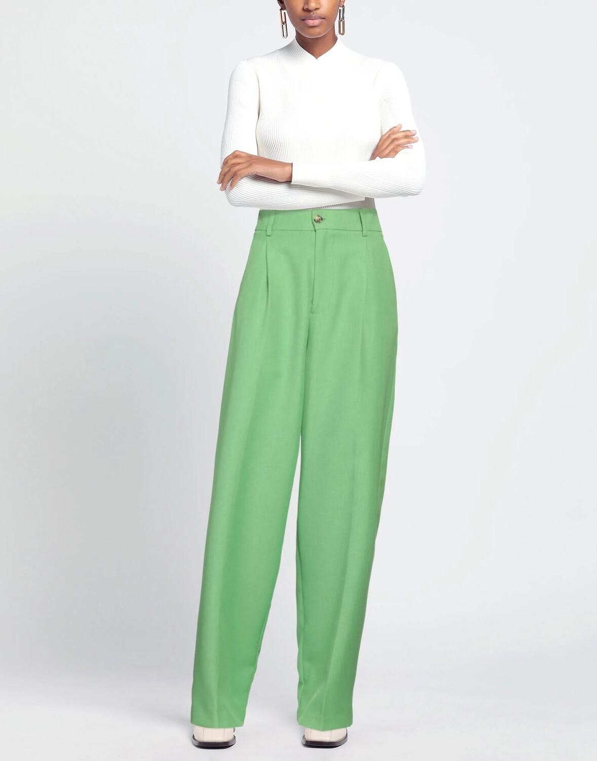 Полотняное переплетение, без аппликаций, одноцветное изделие, завышенная талия, зауженная брючина, стандартный крой, 1 пуговица, застежка-молния, множество карманов, индивидуальный пошив