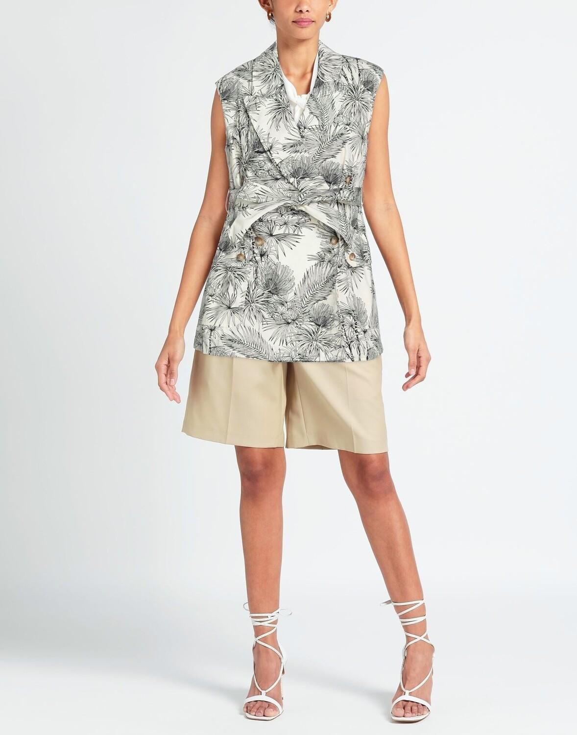 Полотняное переплетение, пояс, цветочный дизайн, воротник с лацканами, без рукавов, двубортный, застежка на пуговицы, множество карманов, внутренняя часть на частичной подкладке, стрейч, двубортный пиджак