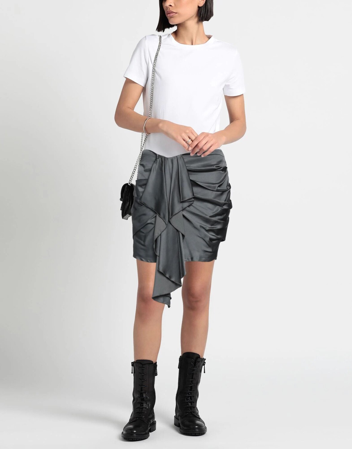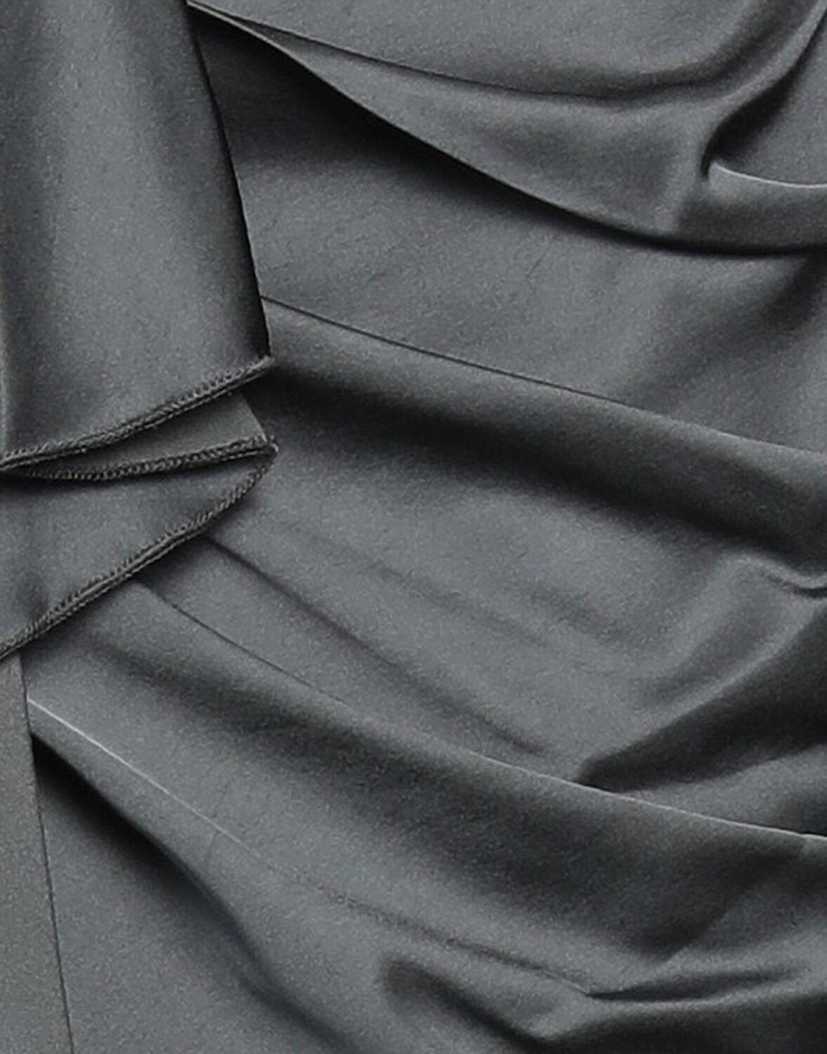 Атлас, драпированная отделка, одноцветное изделие, без подкладки, застежка-молния, без карманов, форма-карандаш