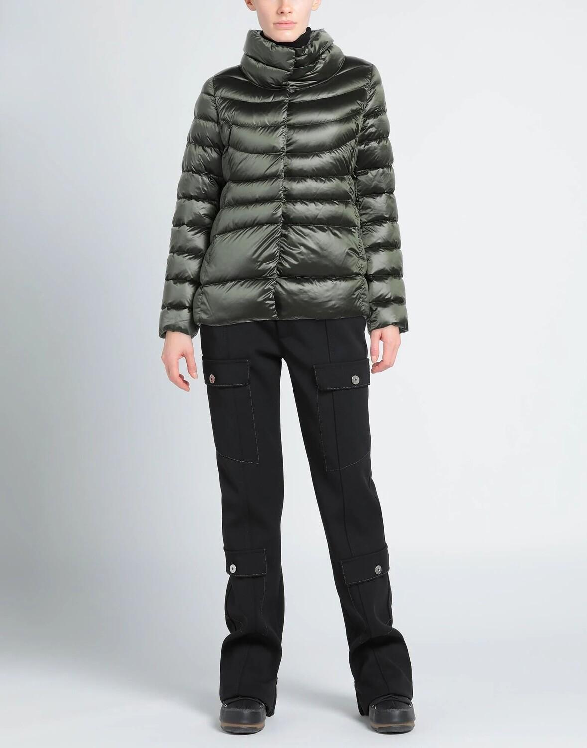 Техническая ткань, эффект ламинирования, логотип бренда, одноцветное изделие, водолазка, однобортный, длинные рукава, наполнитель из утиного пуха, застежка на кнопки, застежка-молния, множество карманов, содержит нетекстильные части животного происхождения, однобортный пиджак