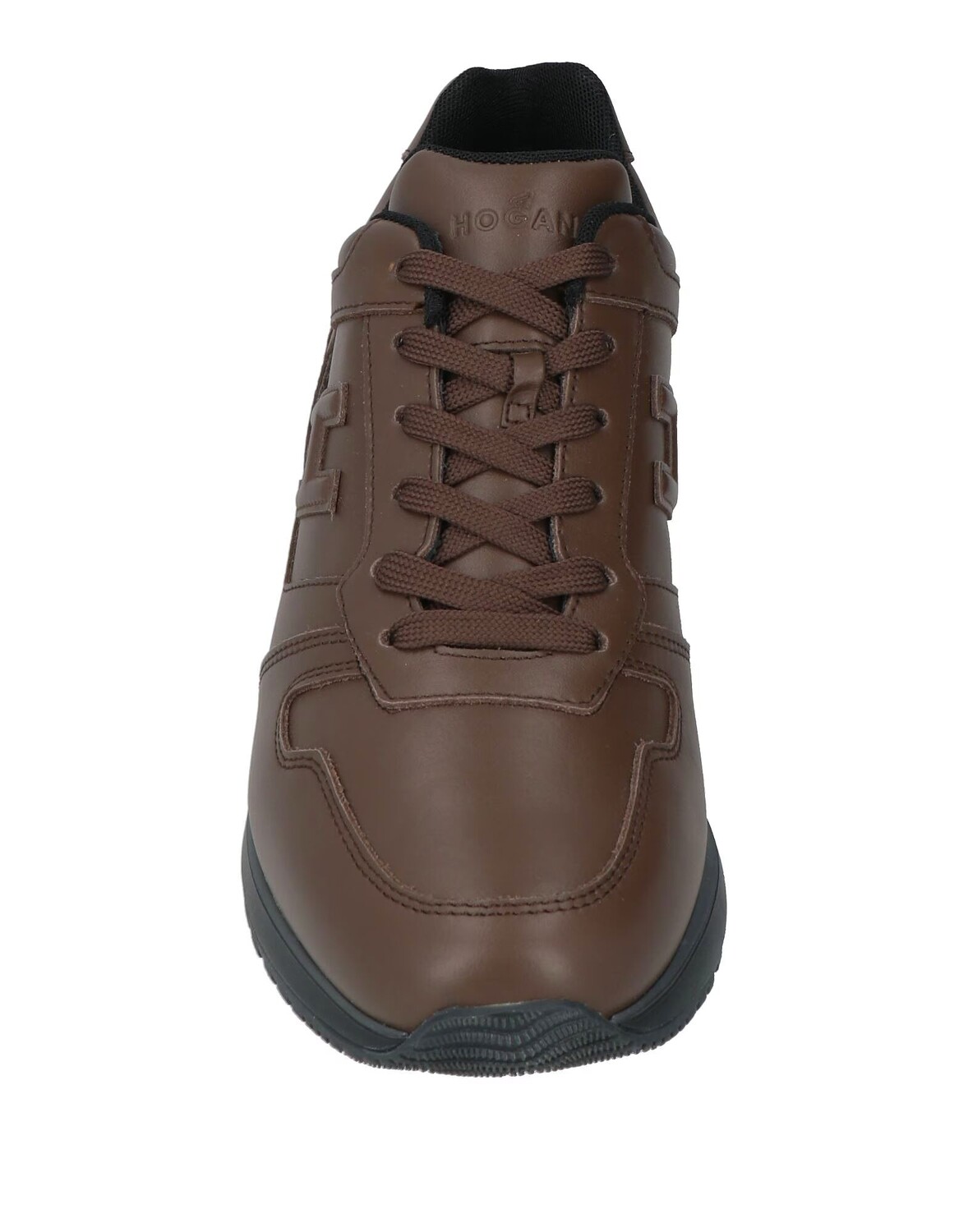 Кожа, логотип бренда, одноцветное изделие, кожаная подкладка, шнуровка, скругленный носок, без каблука, резиновая подошва с тиснением, содержит нетекстильные части животного происхождения, большой размер, низкие кеды и кроссовки