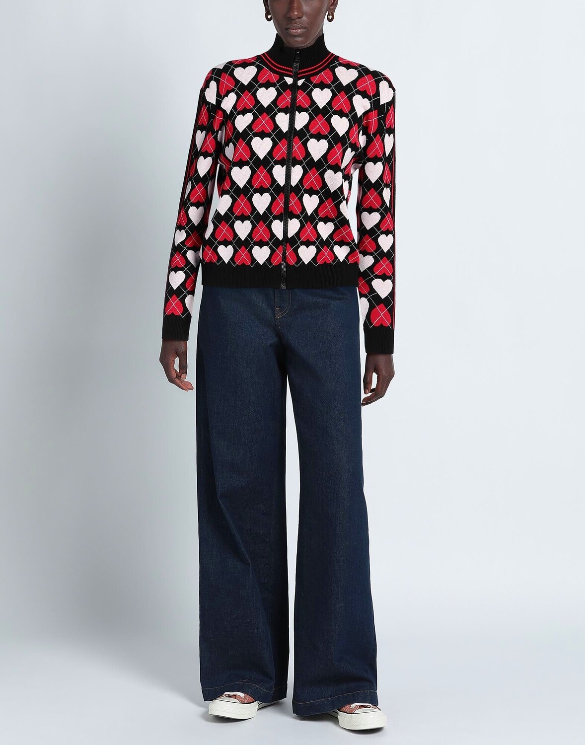 Трикотаж, легкая вязка, без аппликаций, геометрический принт, разноцветный, длинные рукава, застежка-молния, без карманов, машинная стирка, не отбеливать, не сушить в стиральной машине, большой тираж этой марки