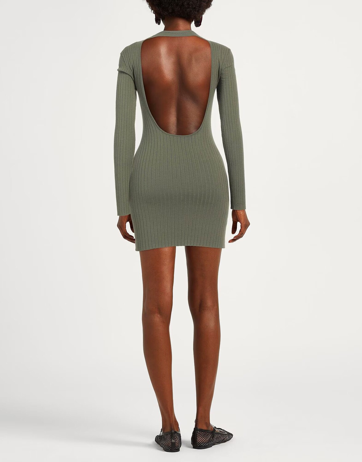 Облегающее платье, трикотажное, в рубчик, легкий трикотаж, однотонное изделие, открытая спина, круглый вырез, длинные рукава, без подкладки, без карманов, машинная стирка, нельзя отбеливать, нельзя сушить в стиральной машине
