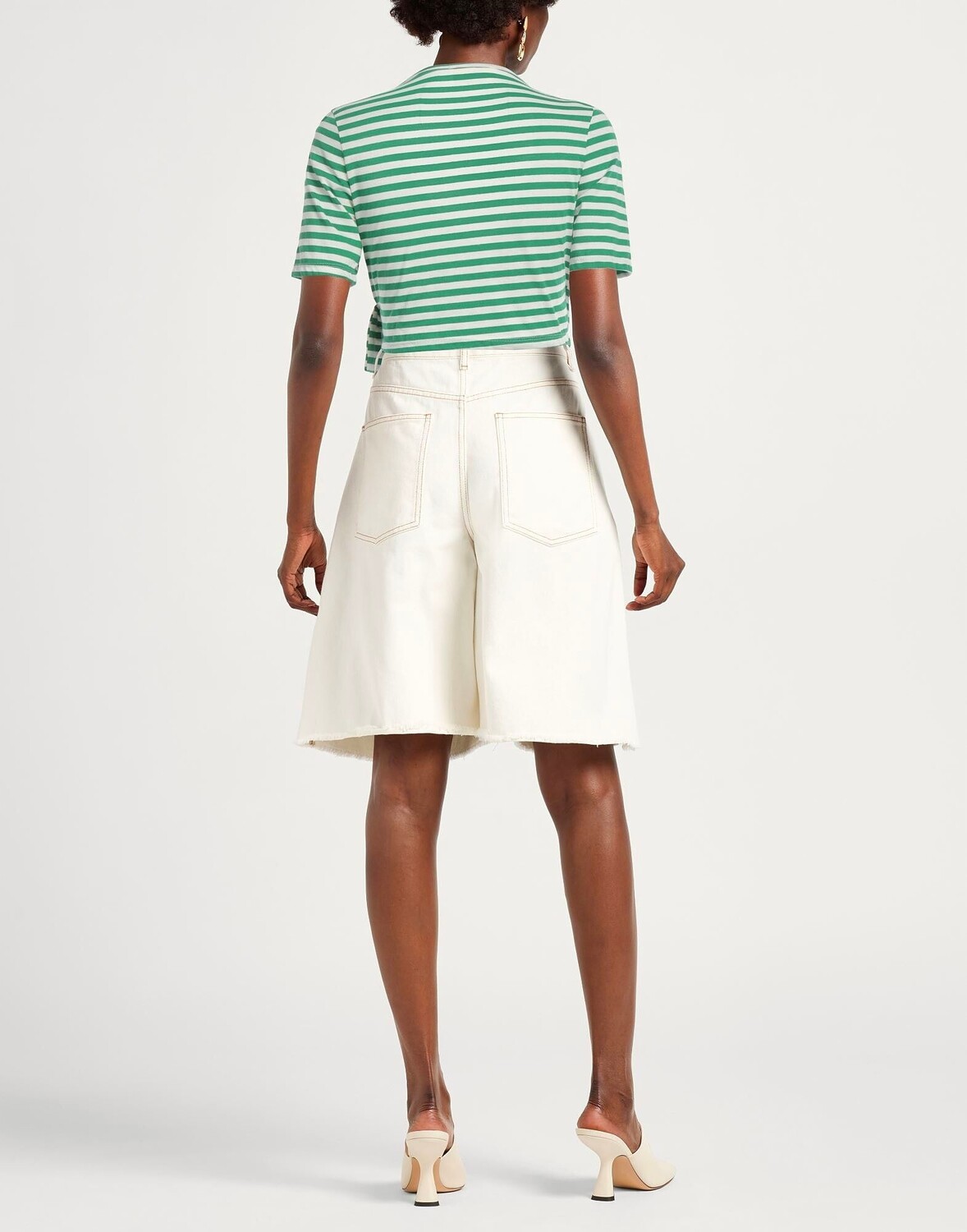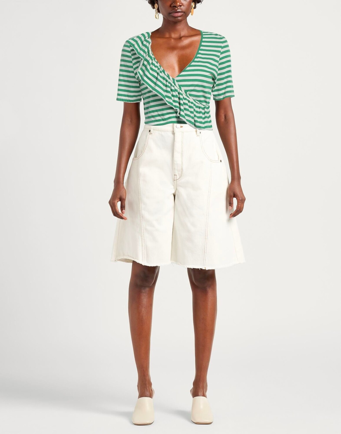 Укороченная футболка, трикотаж, оборки, в полоску, глубокий вырез, короткие рукава, без карманов, ручная стирка или химчистка, не отбеливать, нельзя сушить в стиральной машине