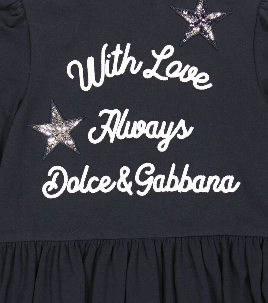 Платье из смесового хлопкового джерси с принтом Dolce&Gabbana, синий