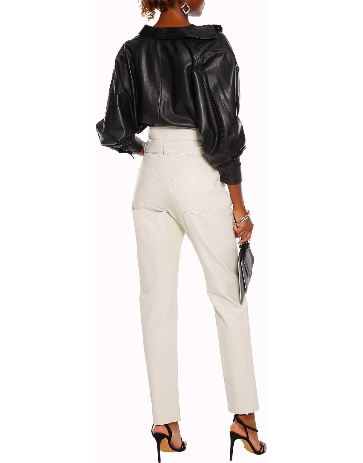 Кожа, ремень, одноцветное изделие, завышенная талия, петли для ремня, зауженная брючина, стандартная посадка, 1 пуговица, застежка-молния, множество карманов, содержит нетекстильные части животного происхождения, большой размер