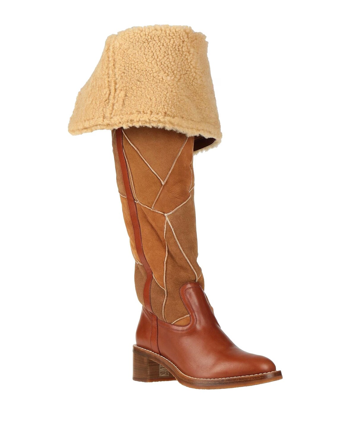 Кожа, нубук, без аппликаций, разноцветный рисунок, подкладка из козьего волоса, скругленный носок, квадратный каблук, резиновая подошва, содержит нетекстильные части животного происхождения, модель ботфортов