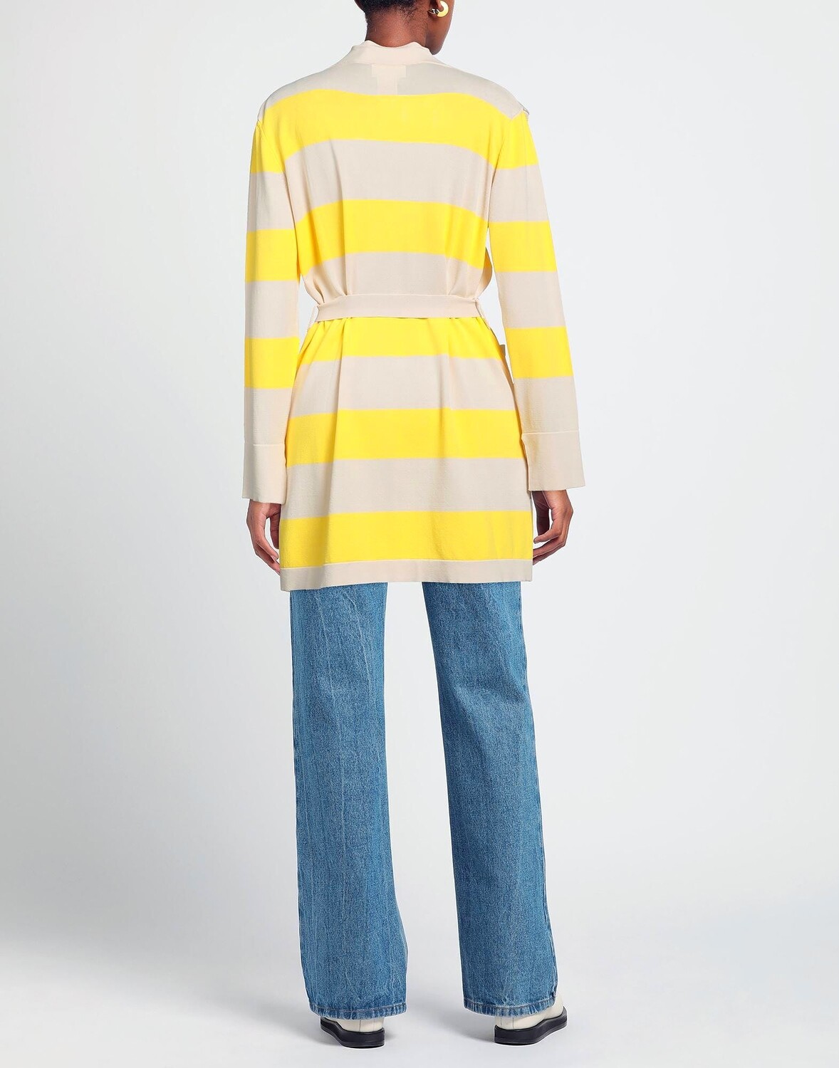 Трикотаж, легкая вязка, пояс, полоски, двухцветный, глубокий вырез, длинные рукава, множество карманов, стрейч