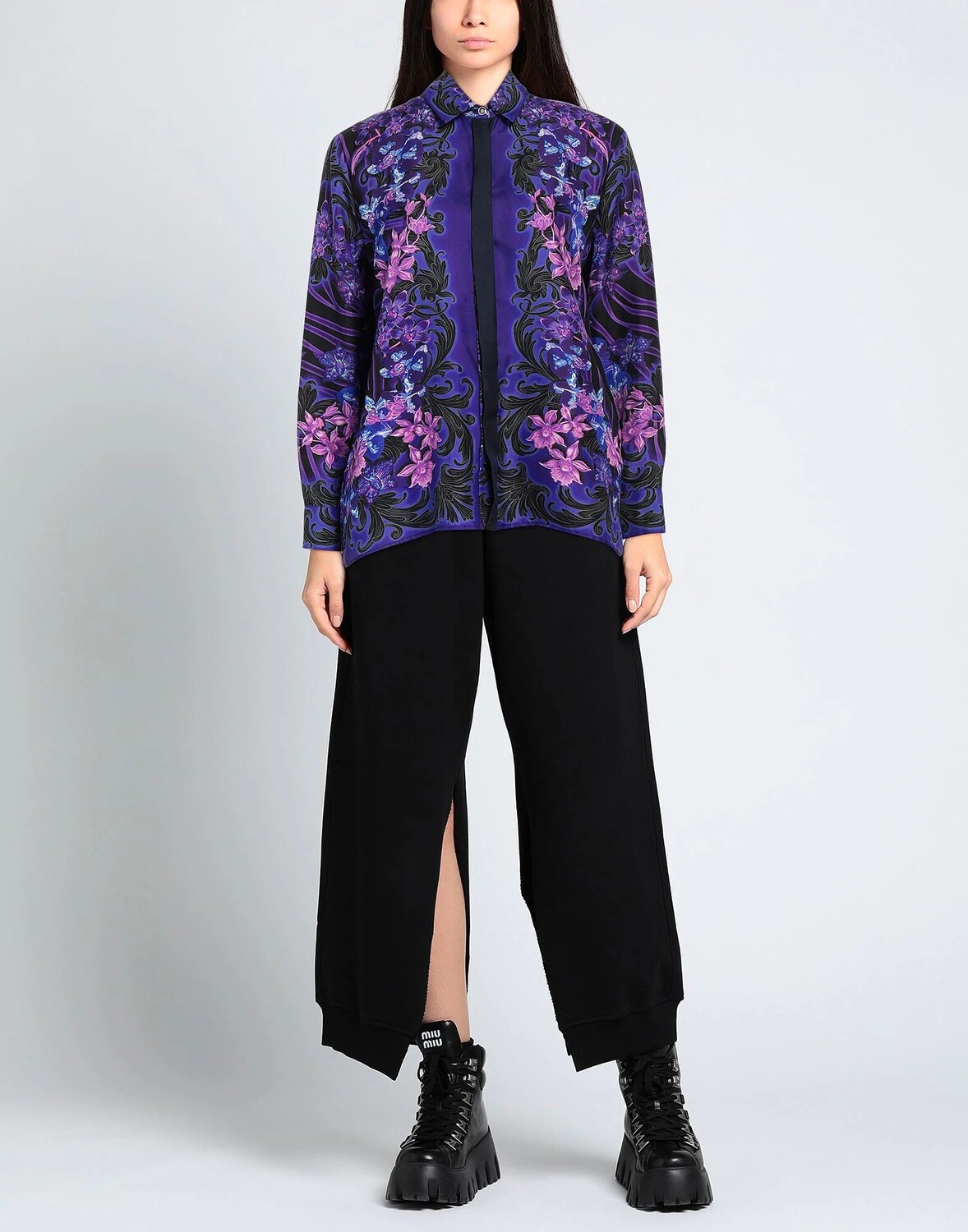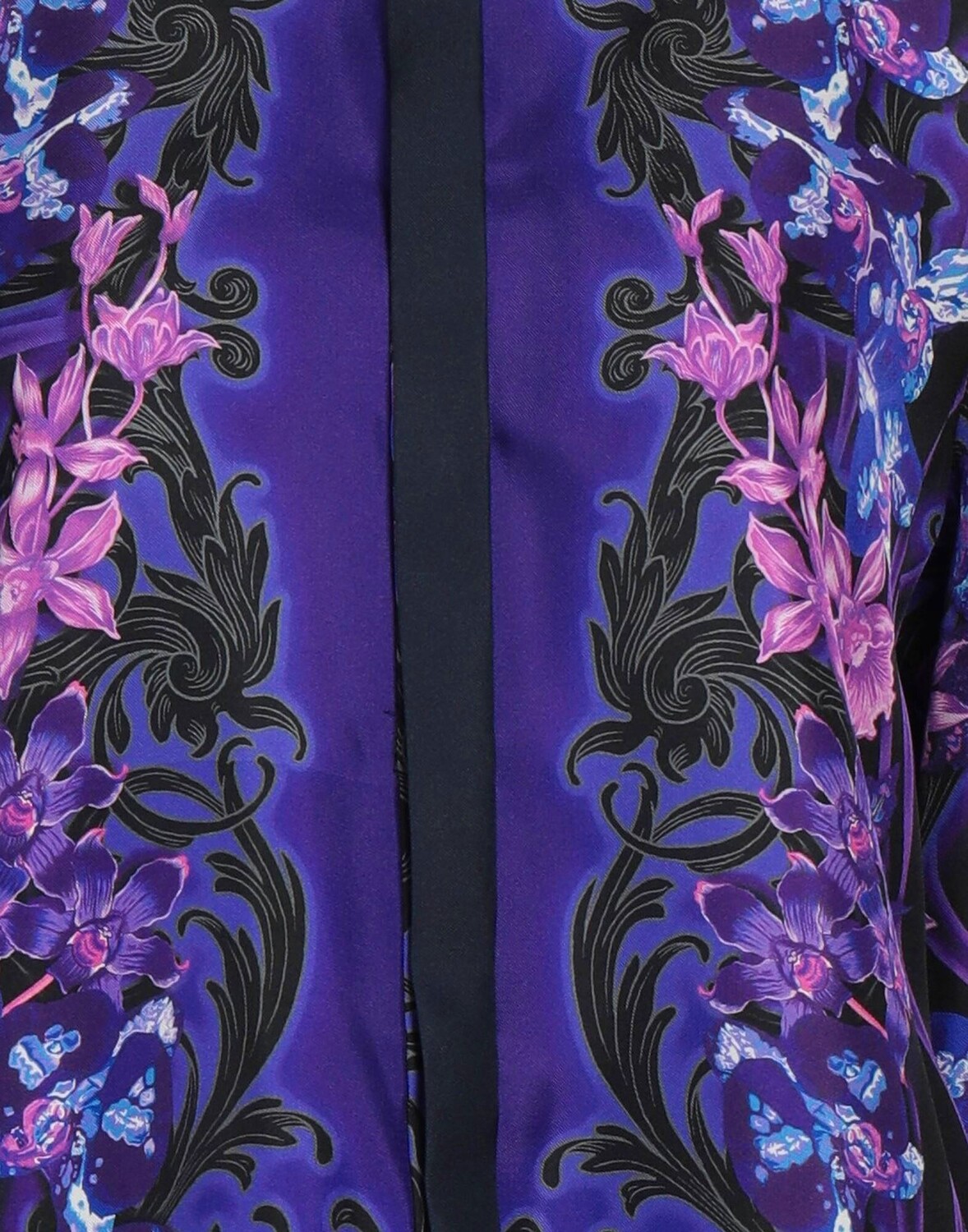 Саржа, отделка атлас, без аппликаций, цветочный дизайн, классический вырез горловины, длинные рукава, манжеты на пуговицах, потайные пуговицы, без карманов