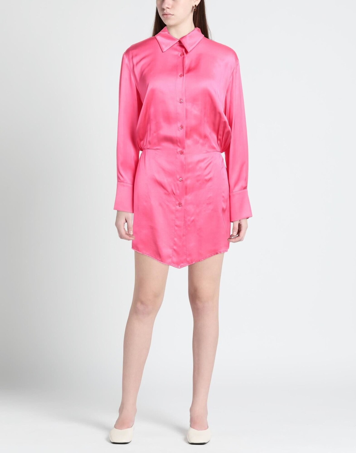Атлас, без аппликаций, одноцветное изделие, классический вырез горловины, длинные рукава, без подкладки, застежка на пуговицы, без карманов, платье-рубашка