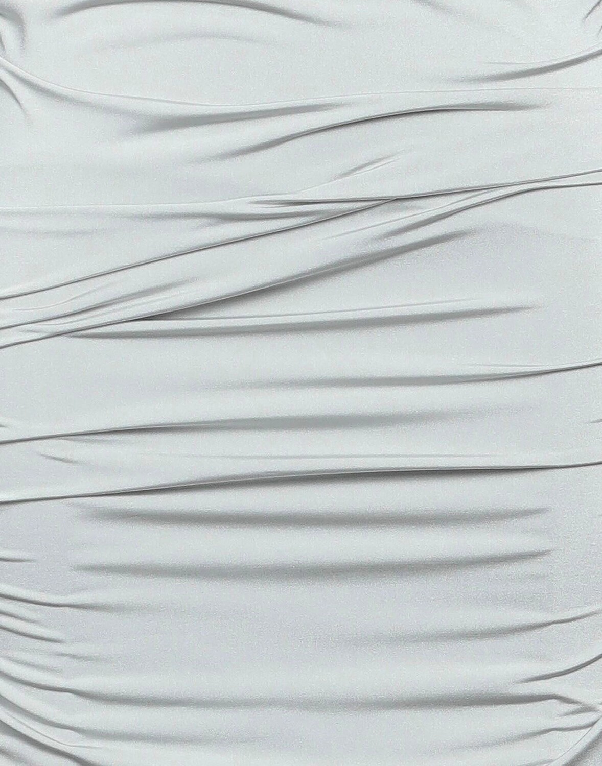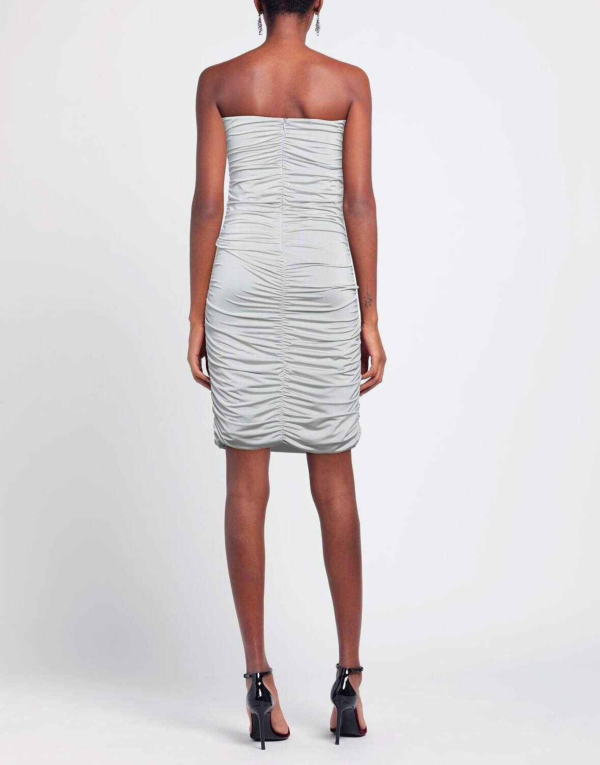 Джерси, оборки, драпированная отделка, одноцветное изделие, глубокий вырез, без рукавов, внутренняя часть с корсетом, застежка-молния, стрейч, фасон «карандаш»