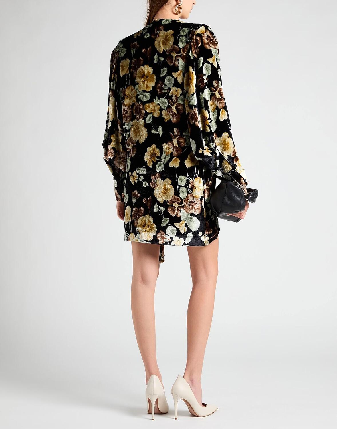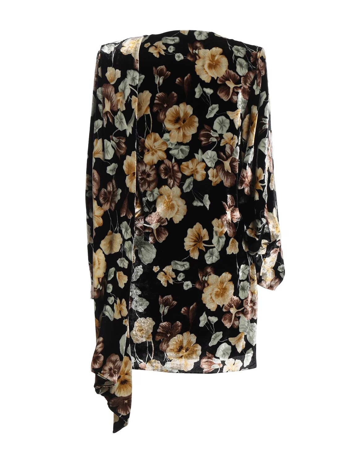 Бархат, без аппликаций, цветочный принт, круглый вырез, длинные рукава, подплечники, внутри на подкладке, застежка-молния, без карманов, химчистка, не отбеливать, не сушить в стиральной машине, платье-клеш