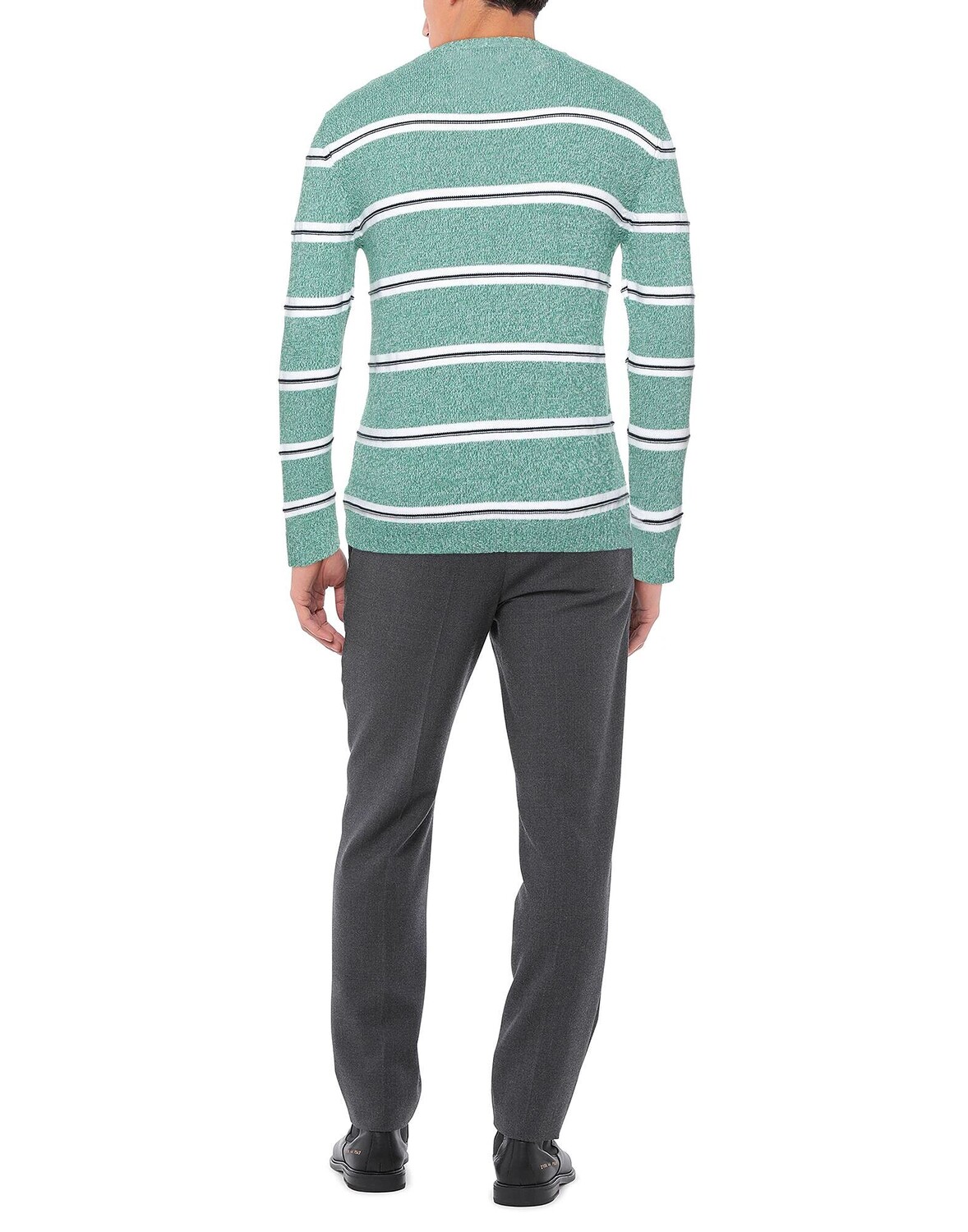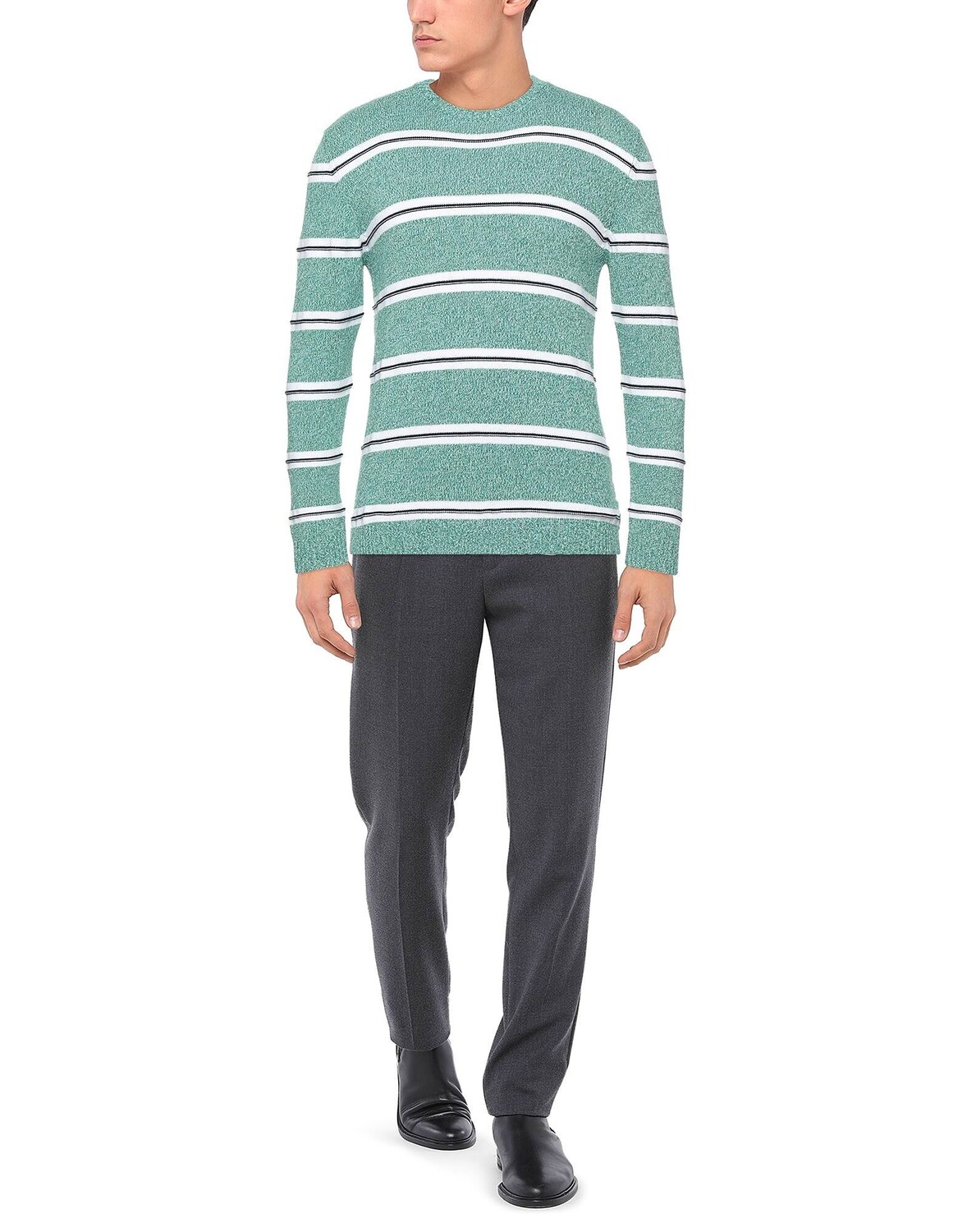 Трикотаж, меланж, без аппликаций, в полоску, круглый воротник, длинные рукава, без карманов, легкий трикотаж