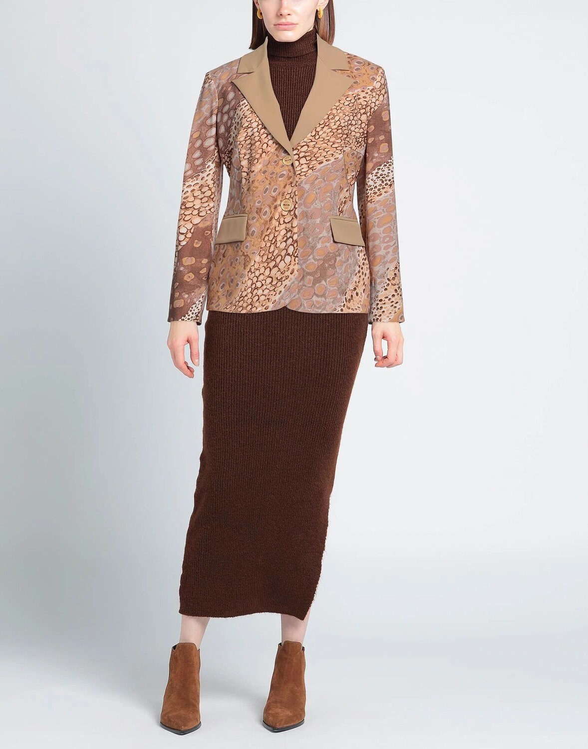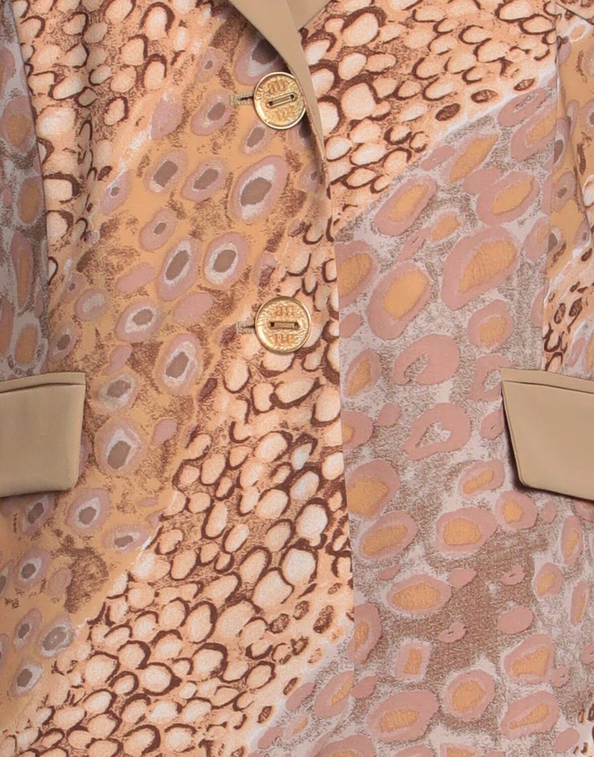 Трикотаж, без аппликаций, анималистический принт, воротник с лацканами, однобортный, длинные рукава, на подкладке, пуговицы, без карманов, стрейч, однобортный пиджак