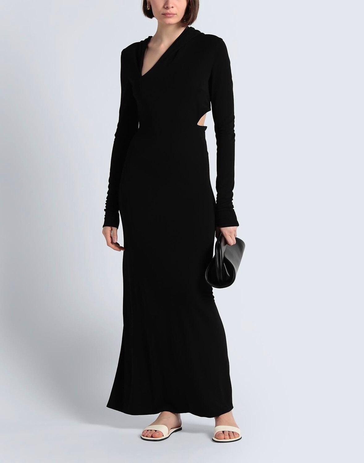 Трикотаж, без аппликаций, одноцветное изделие, v-образный вырез, длинные рукава, без подкладки, застежка-молния, без карманов, стрейч, химчистка, нельзя отбеливать, нельзя сушить в стиральной машине, облегающее платье