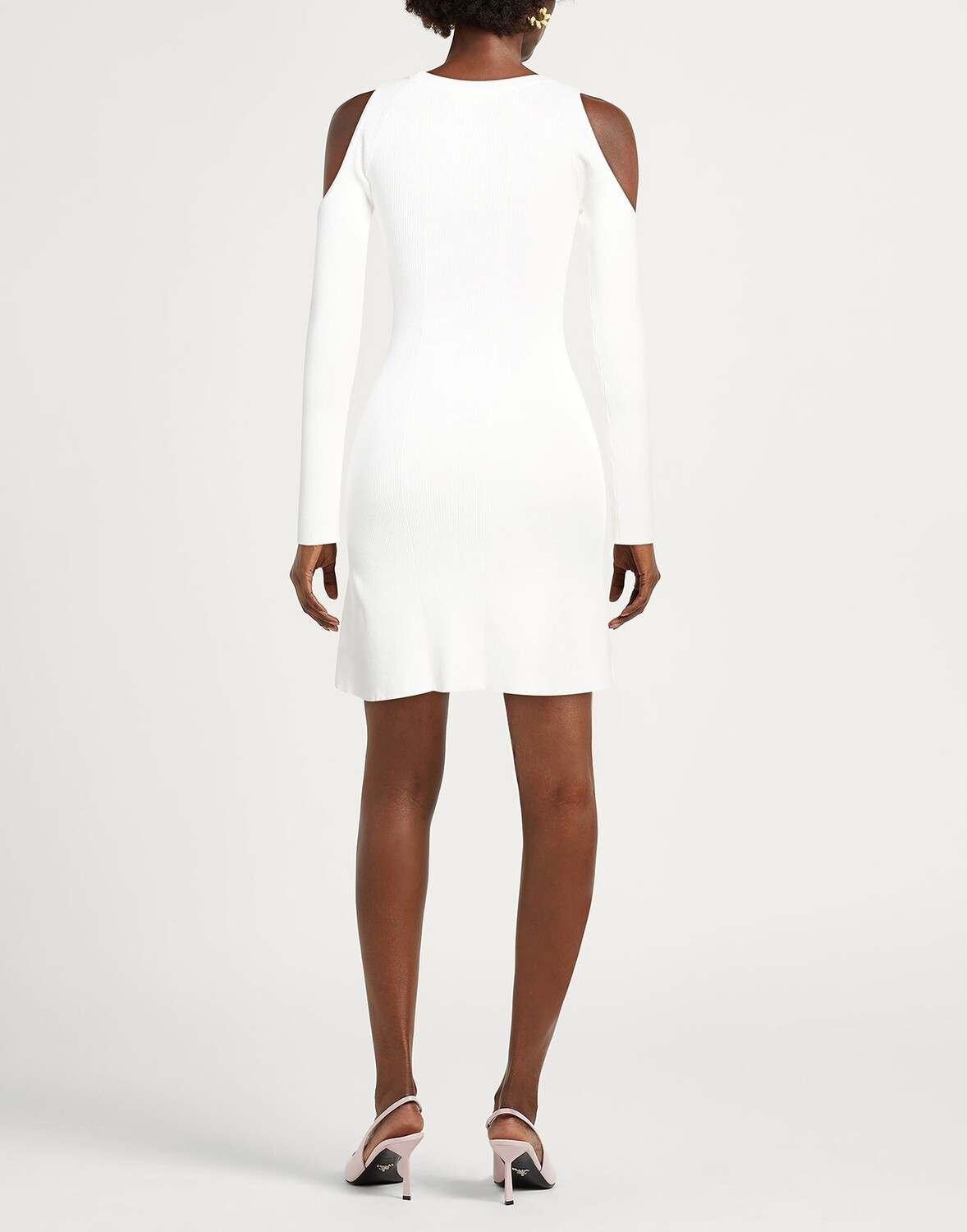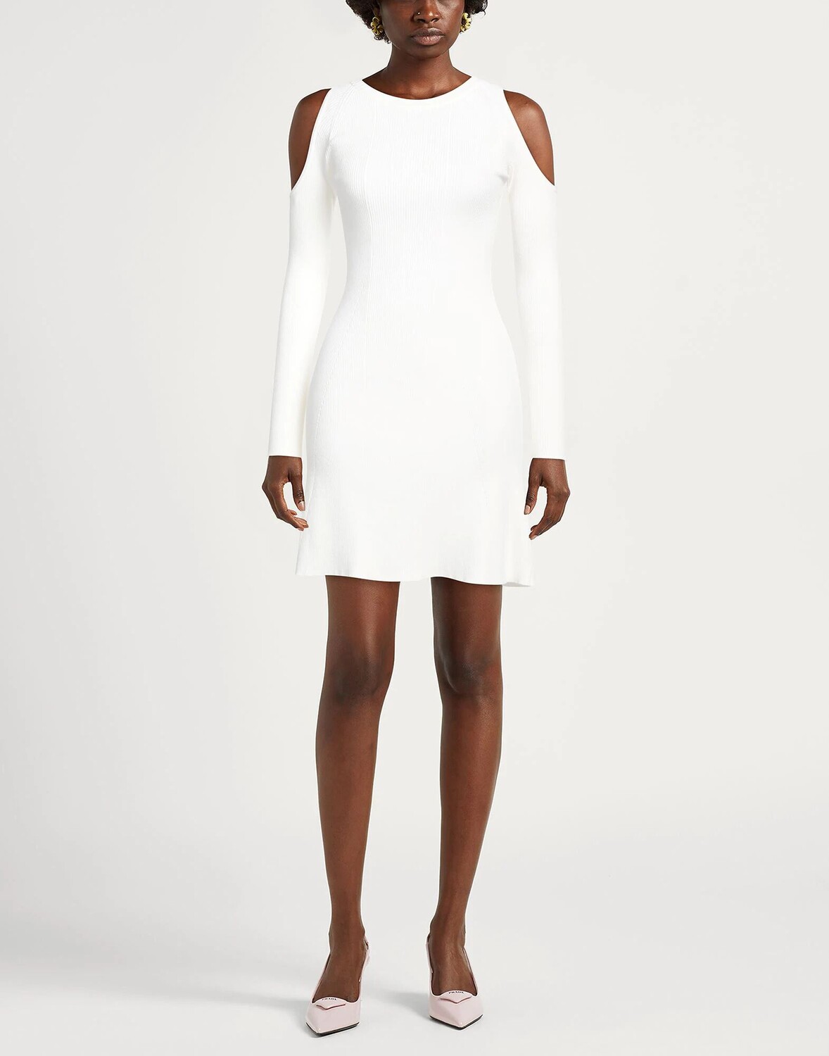 Расклешенное платье, трикотажное, в рубчик, легкий трикотаж, однотонное изделие, вырез, круглый вырез, длинные рукава, без подкладки, без карманов, машинная стирка или химчистка, нельзя отбеливать, нельзя сушить в стиральной машине