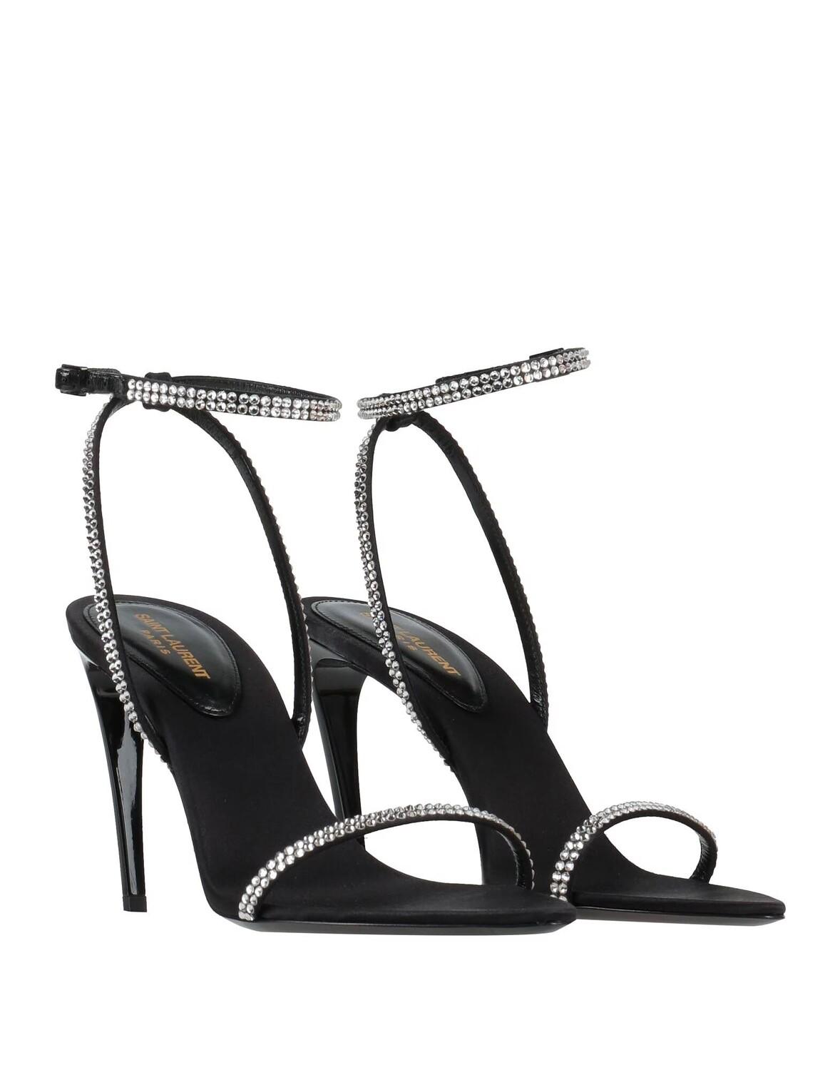 Атлас, кожа, кристаллы, одноцветное изделие с аппликациями, подкладка из кожи, ремешок на щиколотке с пряжкой, острый носок, каблук-шпилька, кожаная подошва, содержит нетекстильные части животного происхождения, босоножки с ремешком на щиколотке