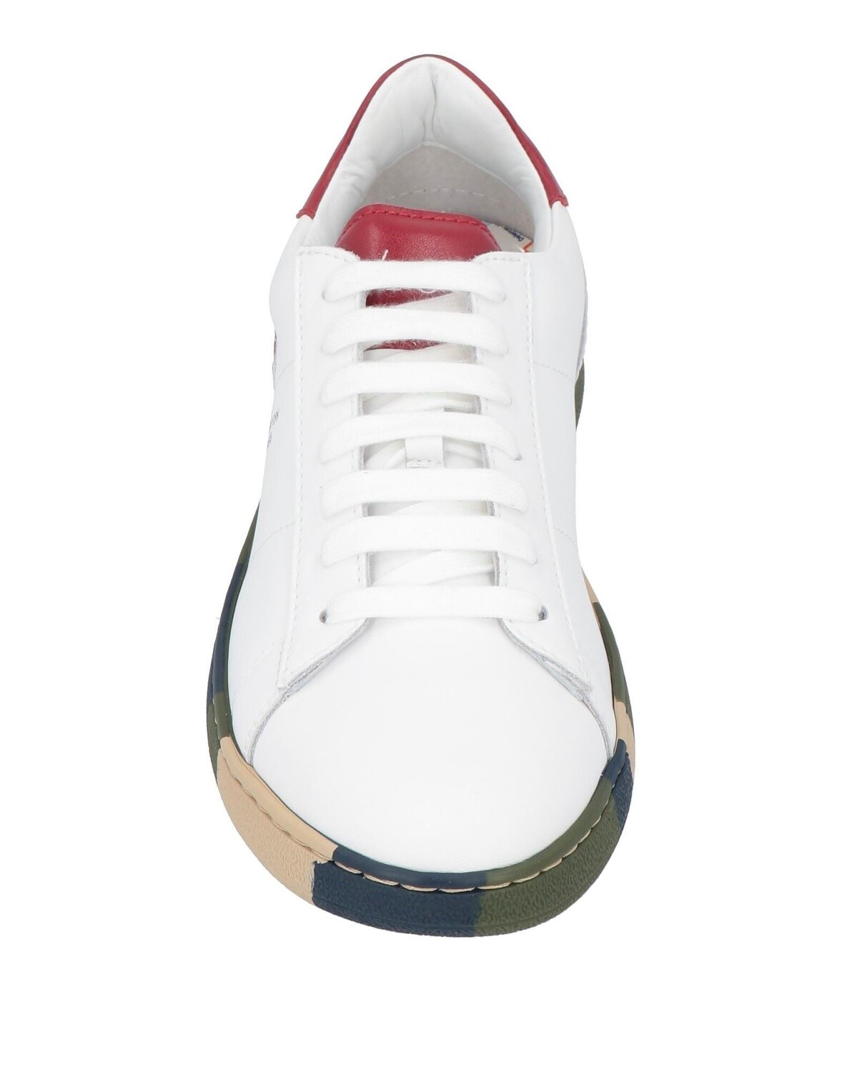 Кожа, логотип бренда, двухцветное изображение, кожаная подкладка, шнуровка, скругленный носок, плоская поверхность, резиновая подошва с тиснением, содержит нетекстильные части животного происхождения, низкие кеды и кроссовки