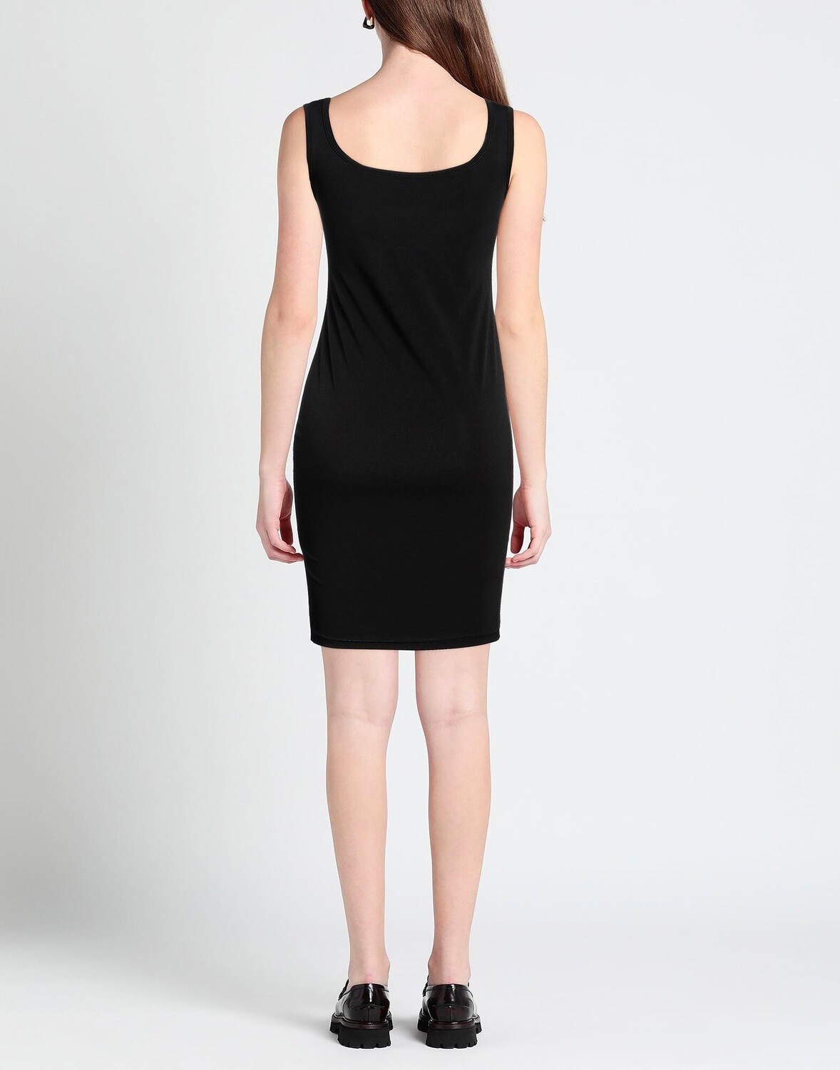 Облегающее платье, синтетический трикотаж, без аппликаций, одноцветное изделие, круглый вырез, без рукавов, без подкладки, без карманов, стрейч, маленький размер