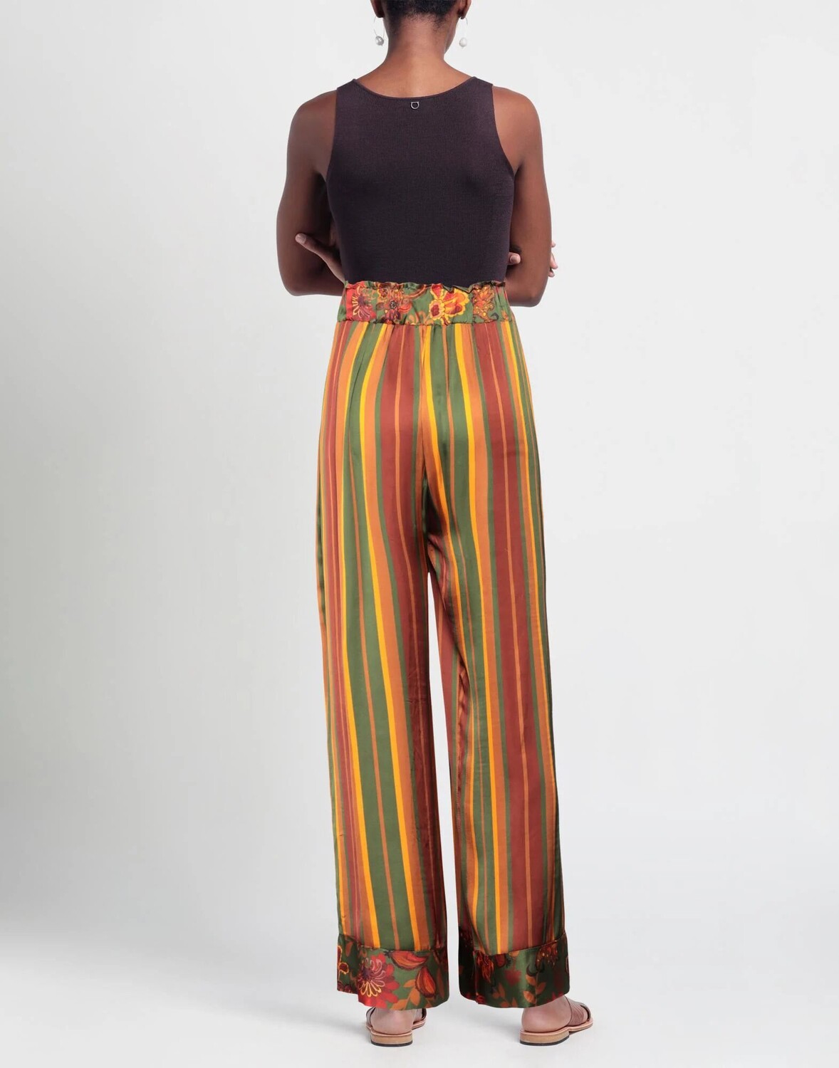 Сатин, без аппликаций, полосок, цветочный дизайн, завышенная талия, прямой крой, удобная посадка, на резинке, без карманов, брюки