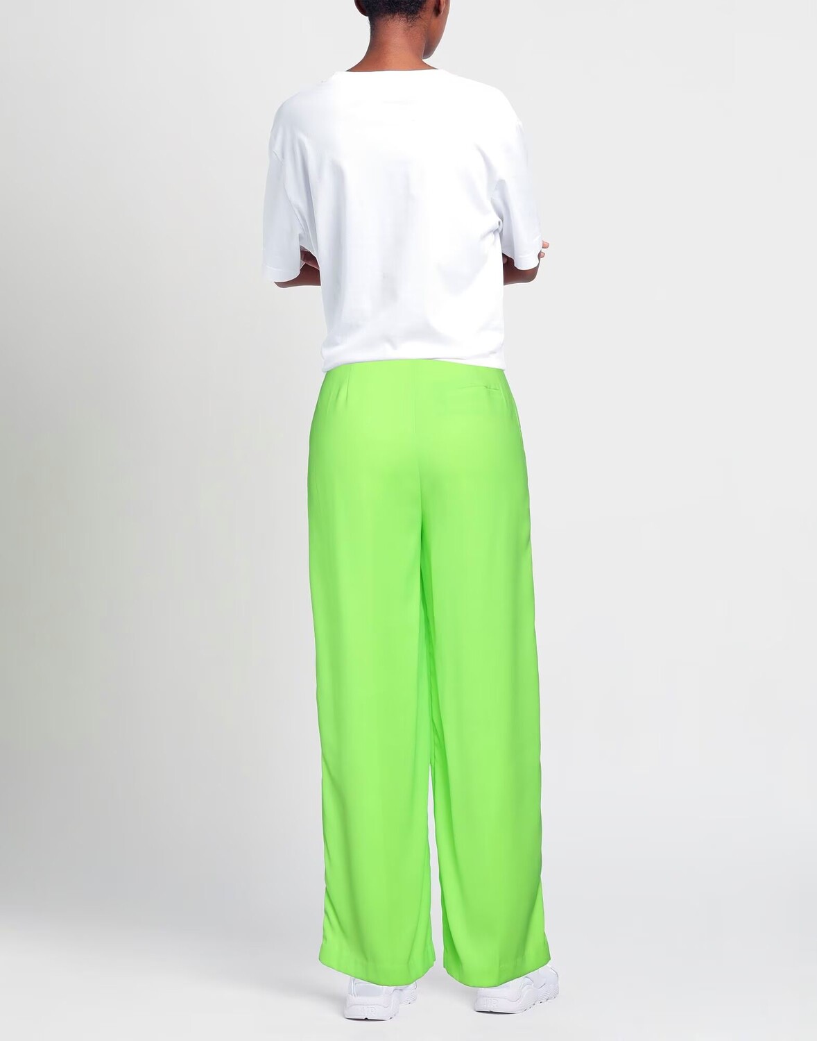 Креп, вытачки, одноцветное изделие, завышенная талия, расклешенные брючины, свободный крой, застежка-молния, пуговицы, множество карманов, машинная стирка или химчистка, нельзя сушить в стиральной машине, не отбеливать, на заказ