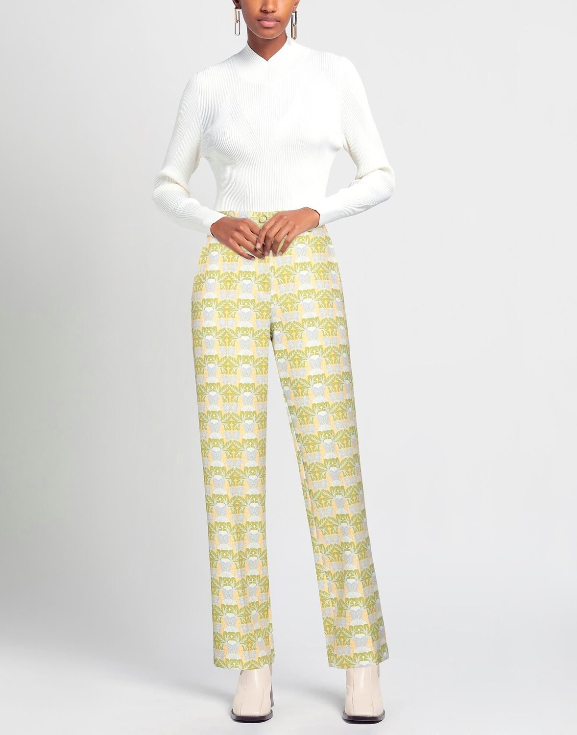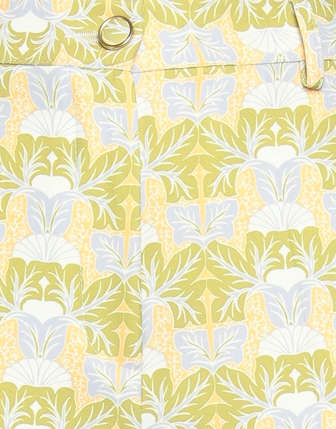 Креп, без аппликаций, цветочный принт, завышенная талия, прямые брючины, классический крой, пуговицы, молния, множество карманов, стрейч, брюки чинос
