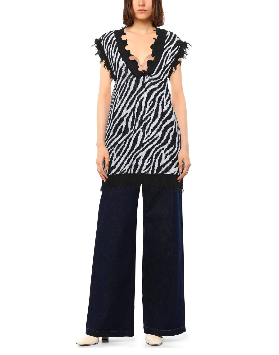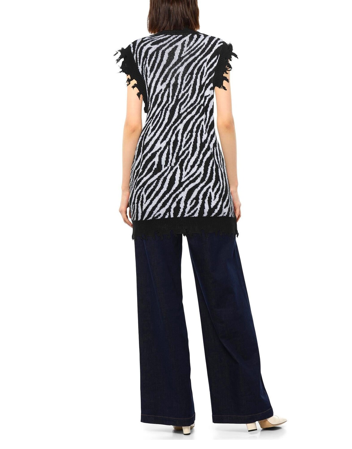 Трикотаж, эффект потертости, без аппликаций, v-образный вырез, полоски «зебра», без рукавов, без карманов