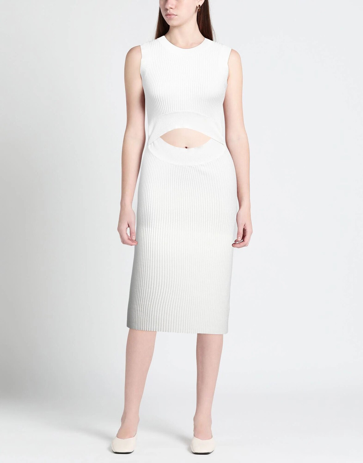 Трикотаж, легкая вязка, без аппликаций, одноцветное изделие, круглый воротник, без рукавов, без подкладки, без карманов, стрейч, фасон-карандаш