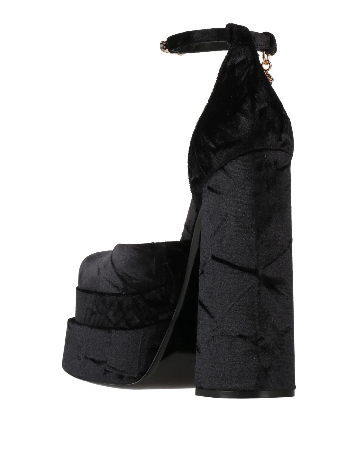 Бархат, логотип бренда, металлические аппликации, одноцветное изделие с аппликациями, подкладка из кожи, ремешок на щиколотке с пряжкой, квадратный носок, квадратный каблук, обтянутый каблук, кожаная подошва, содержит нетекстильные части животного происхождения, туфли-лодочки с ремешком на щиколотке