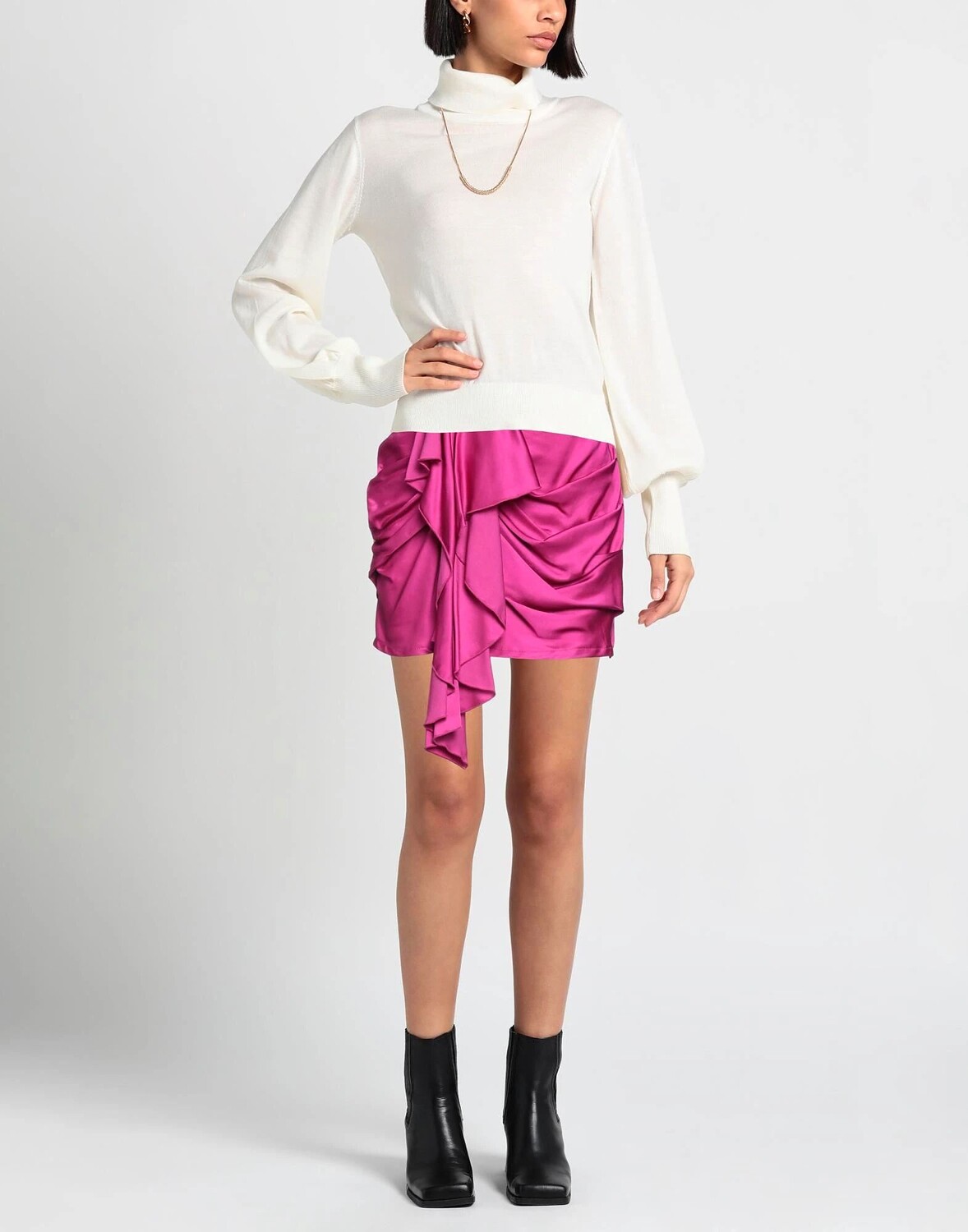 Атлас, драпированная отделка, одноцветное изделие, без подкладки, застежка-молния, без карманов, форма-карандаш