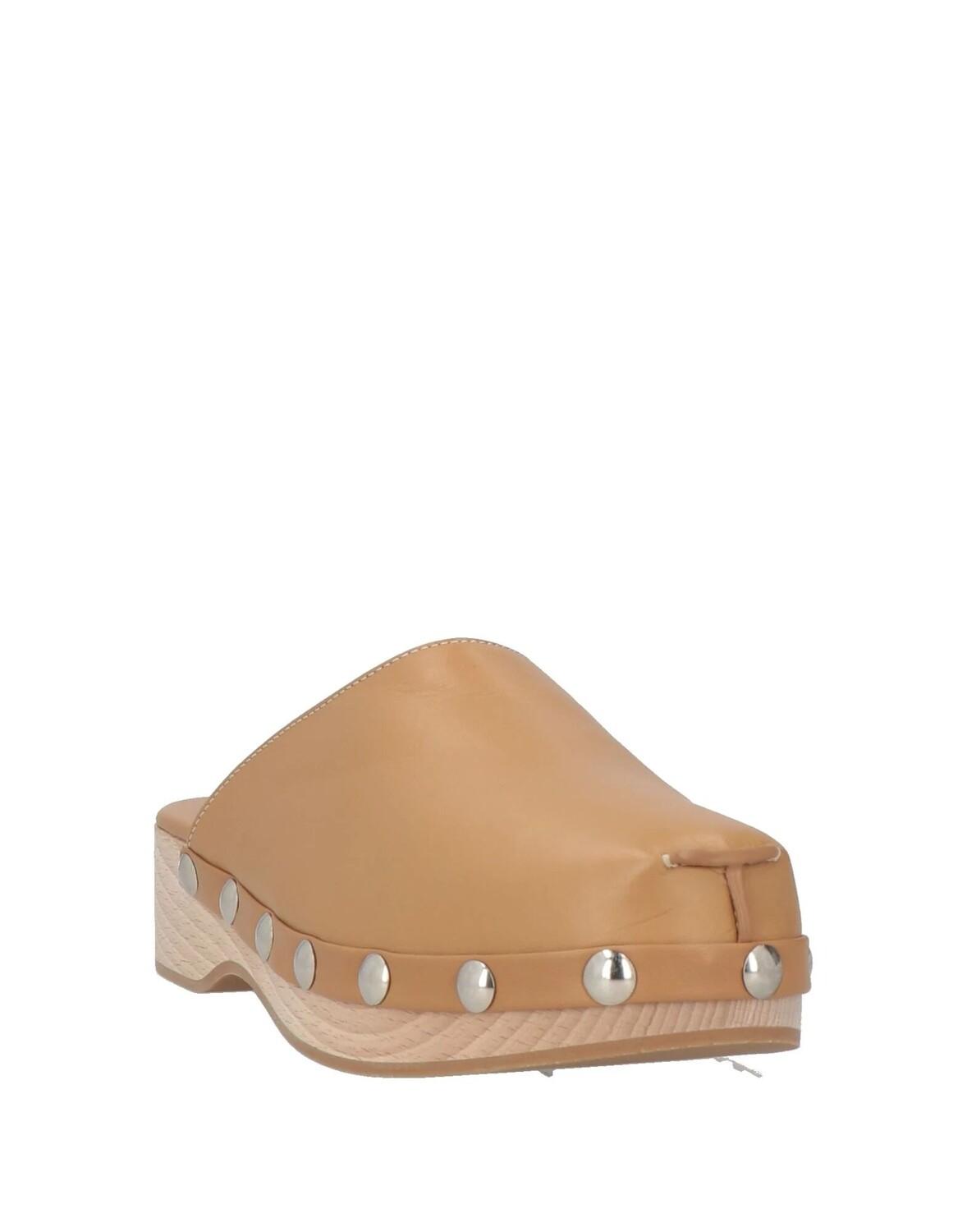 Кожа, кнопки, одноцветное изделие с аппликациями, внутри кожаная подкладка, скругленный носок, квадратный каблук, резиновая подошва, содержит нетекстильные части животного происхождения, модель сабо