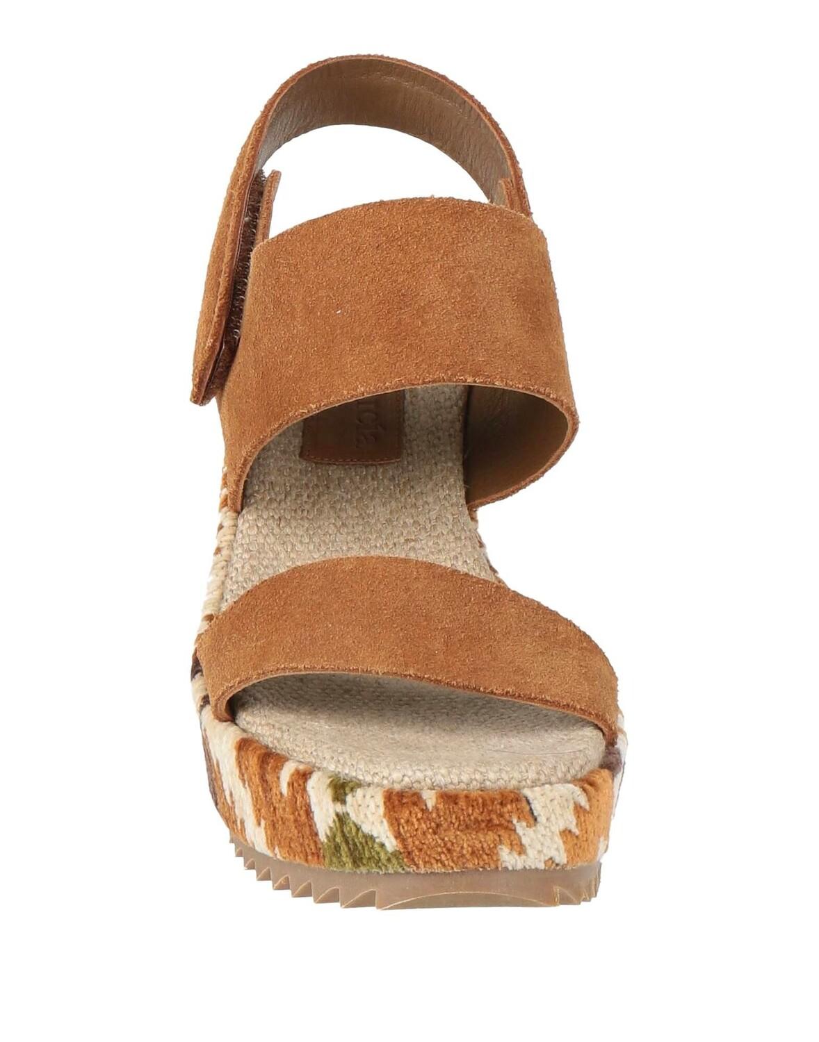 Замша, без аппликаций, разноцветный, внутри тканевая, застежка-липучка, круглый носок, танкетка, резиновая подошва с тиснением, содержит нетекстильные части животного происхождения, босоножки с ремешком на щиколотке