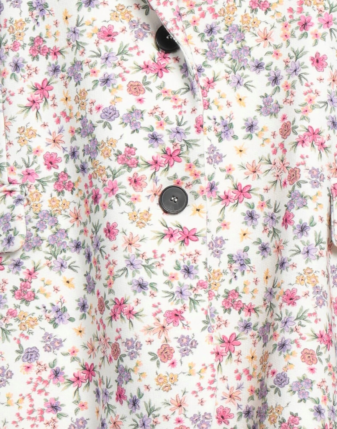Полотняное переплетение, без аппликаций, цветочный дизайн, воротник с лацканами, однобортный, длинные рукава, на подкладке, пуговицы, множество карманов, однобортный пиджак