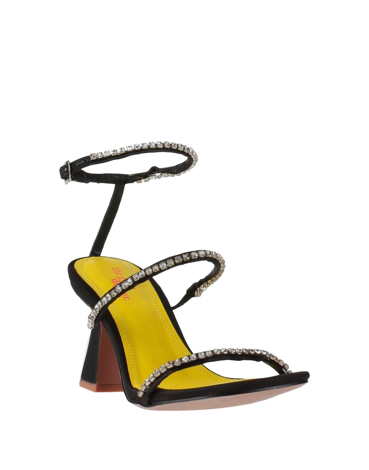 Атлас, стразы, одноцветное изделие с аппликациями, внутри на подкладке, ремешок на щиколотке с пряжкой, квадратный носок, круглый каблук, резиновая подошва с тиснением, сандалии с ремешком на щиколотке