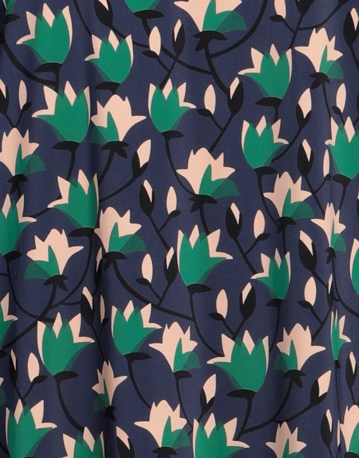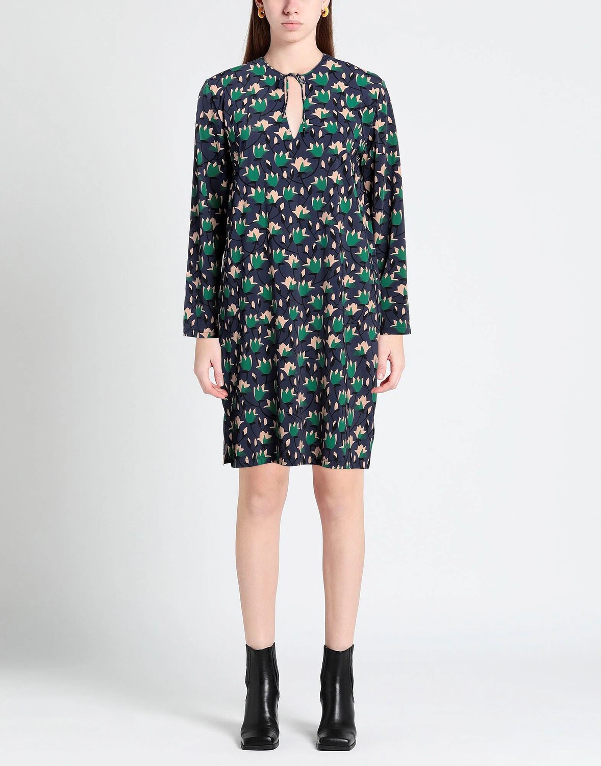 Синтетический трикотаж, без аппликаций, цветочный принт, круглый вырез, длинные рукава, без подкладки, без карманов, стрейч, фасон трапеция