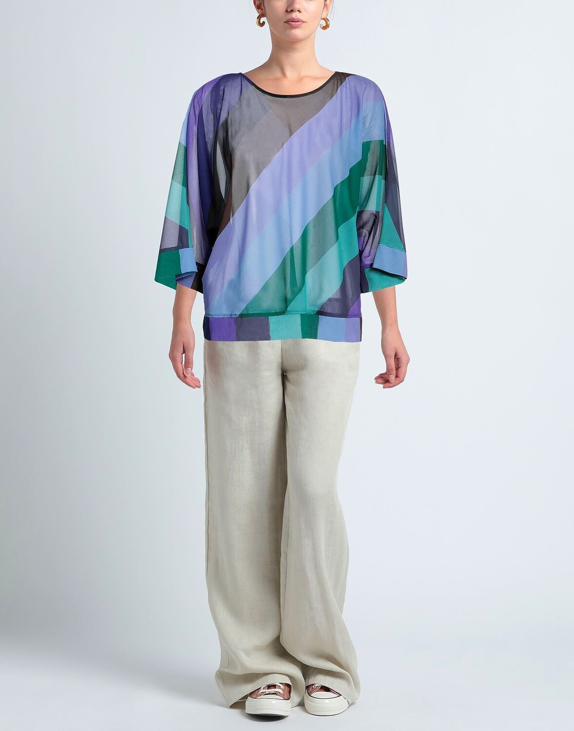 Креп, без аппликаций, разноцветный, круглый вырез, короткие рукава, без карманов, стрейч, верх-кафтан