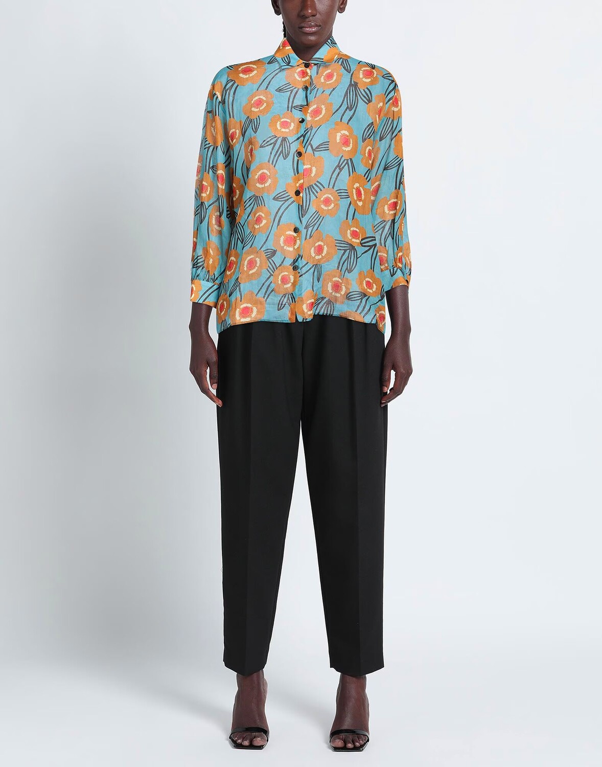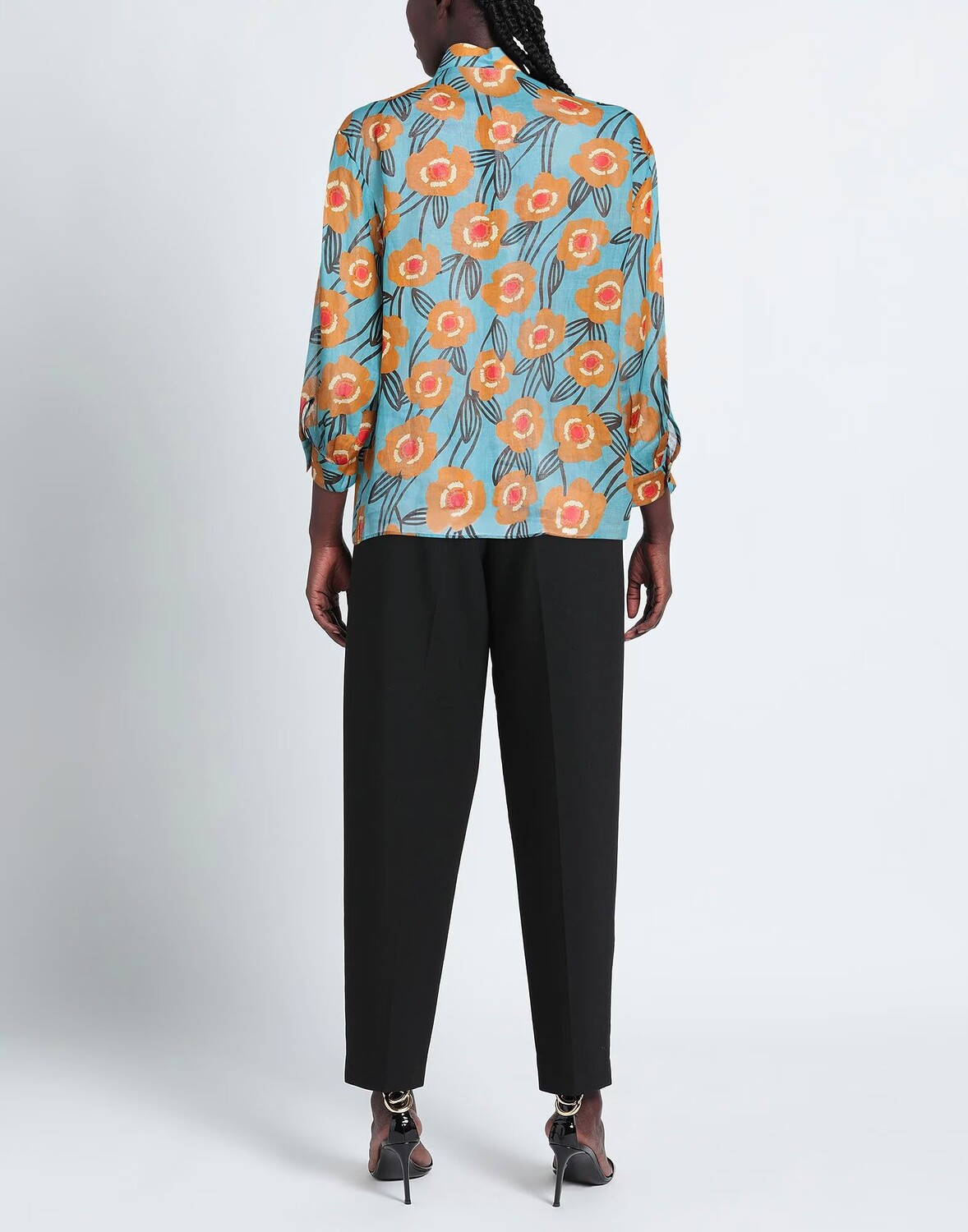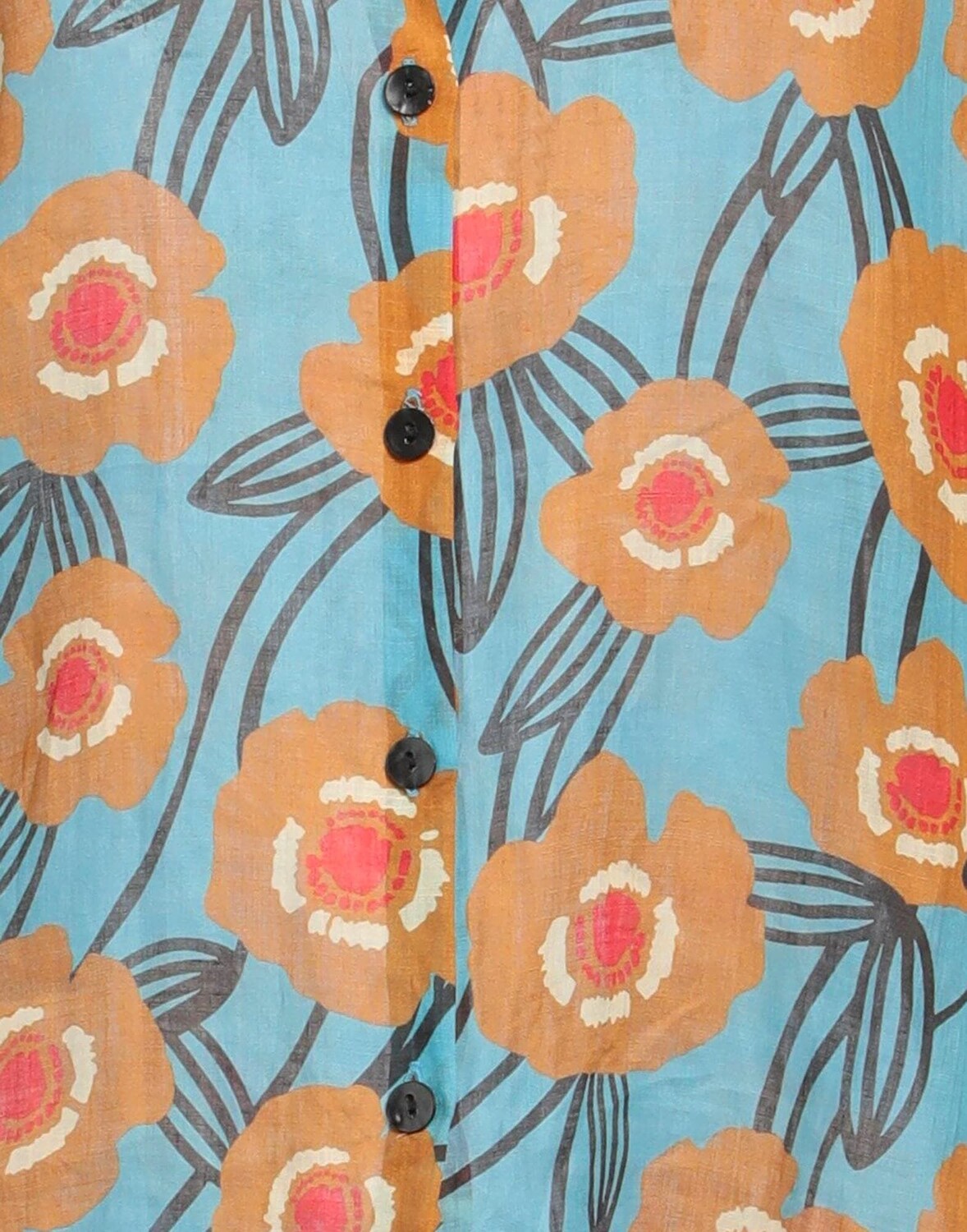 Марля, без аппликаций, цветочный принт, классический воротник, длинные рукава, манжеты на пуговицах, застежка на пуговицы, без карманов