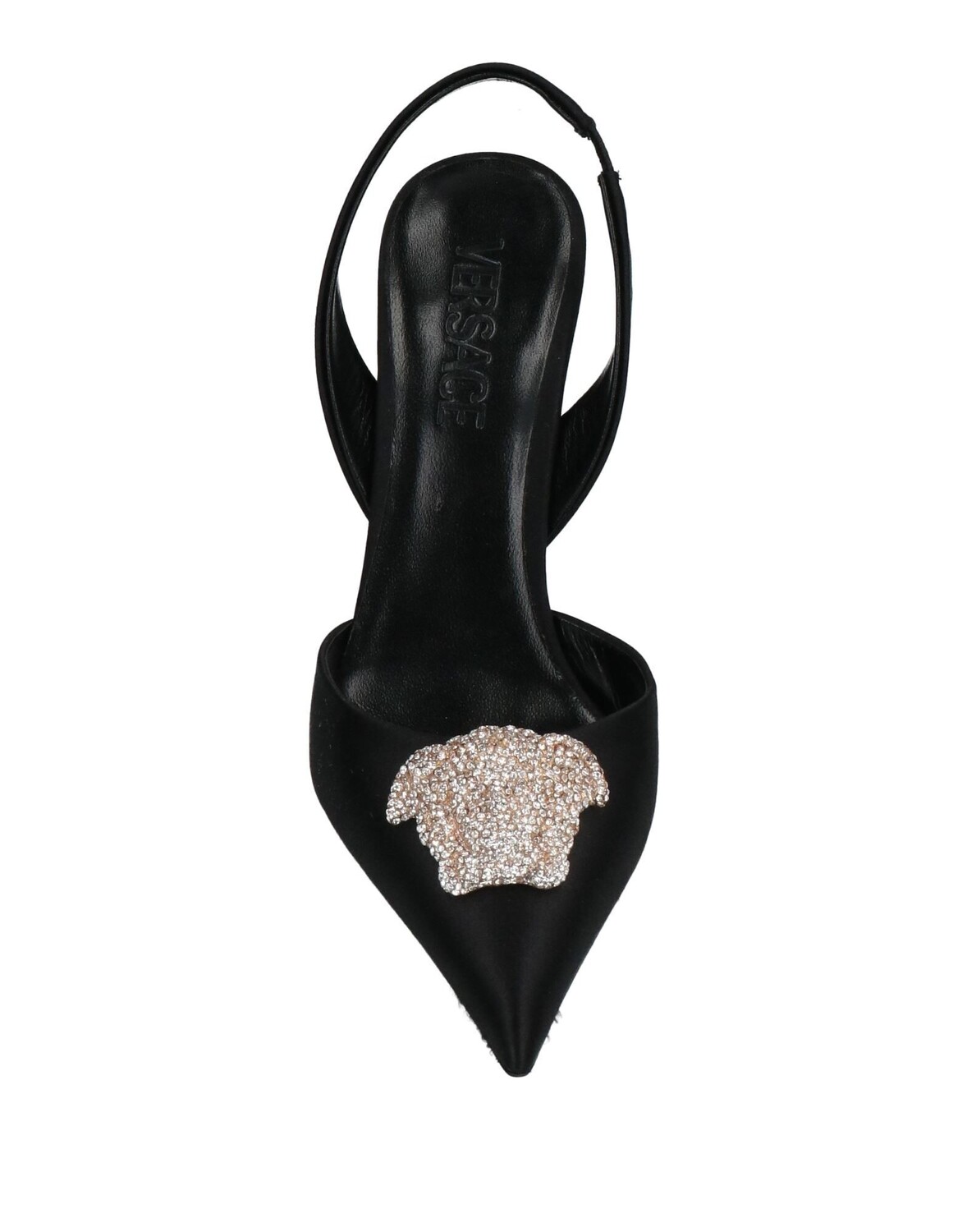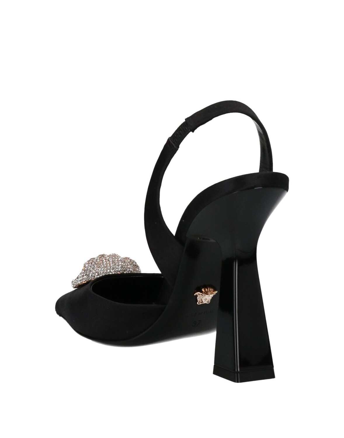 Атлас, логотип бренда, стразы, одноцветное изделие с аппликациями, кожаная подкладка, эластичные ремешки, узкий носок, геометрический каблук, кожаная подошва, содержит нетекстильные части животного происхождения, туфли-лодочки с пяткой на пятке