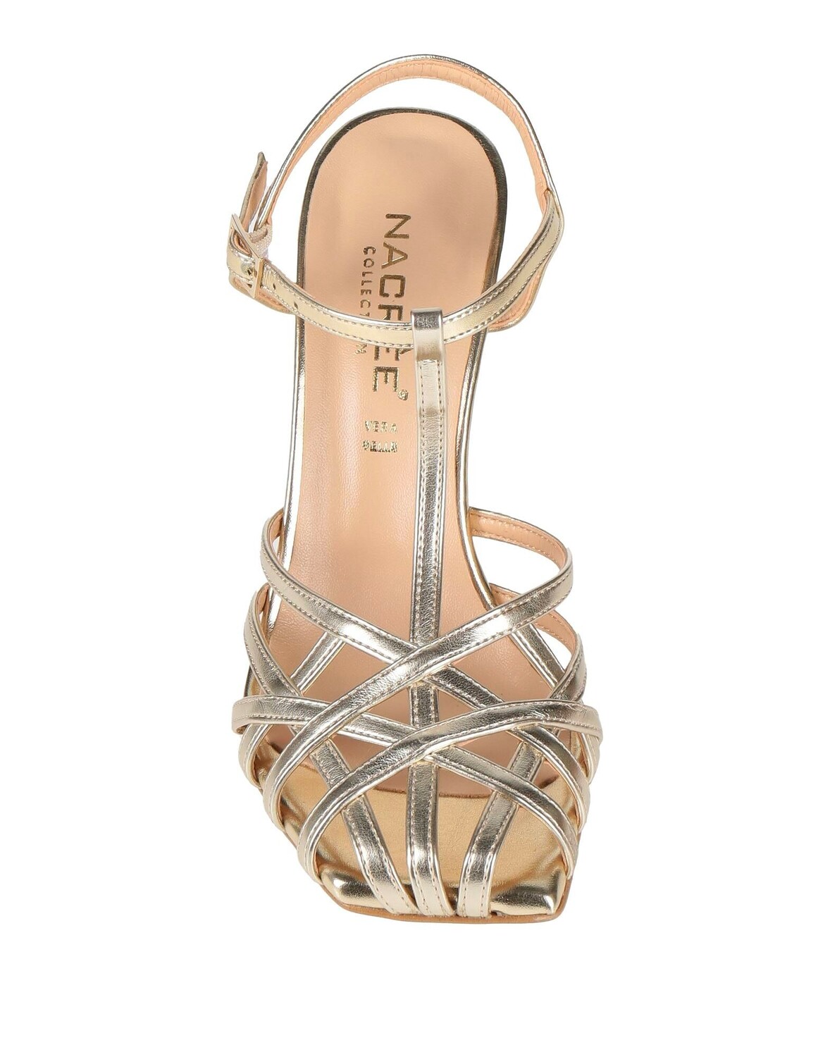 Ткань с покрытием, металлик, без аппликаций, одноцветное изделие, внутренняя поверхность на подкладке, застежка на пряжке, квадратный носок, геометрический каблук, обтянутый каблук, кожаная подошва, содержит нетекстильные части животного происхождения, босоножки с ремешком на щиколотке