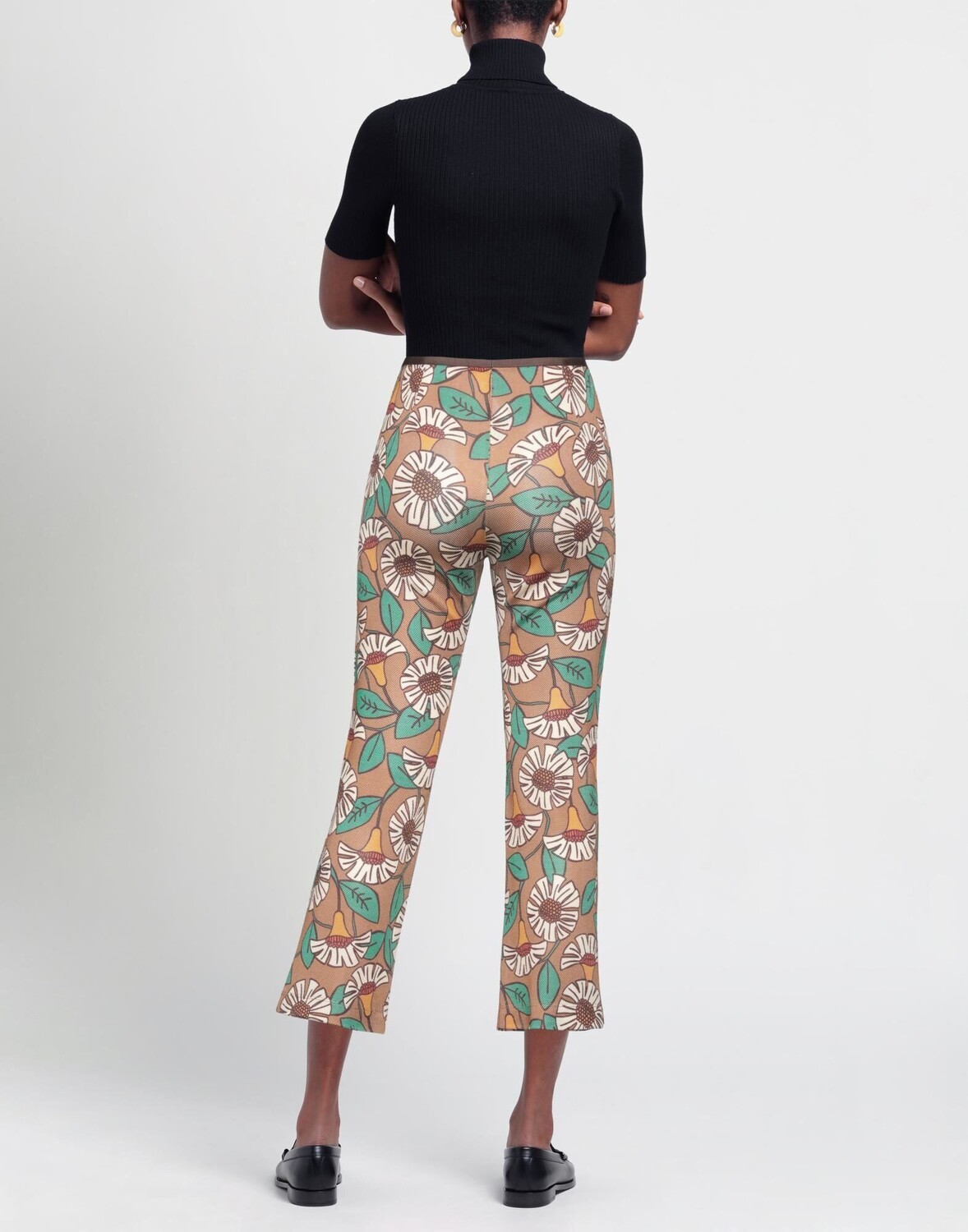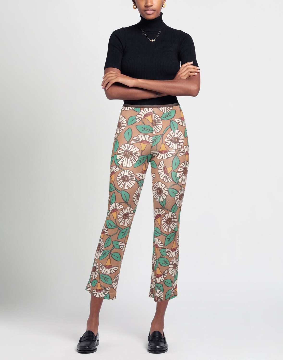 Трикотаж, легкий трикотаж, без аппликаций, цветочный принт, завышенная талия, резинка на талии, расклешенный крой, классический крой, без карманов, стрейч, брюки