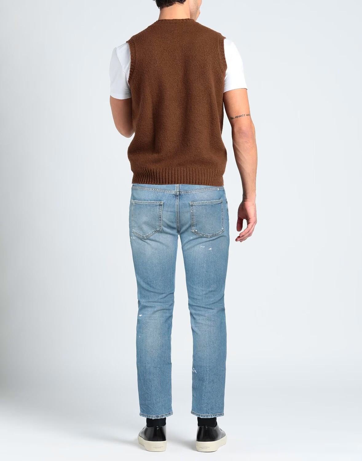 Деним, эффект лака, эффект потертости, логотип бренда, одноцветное изделие, средняя потертость, средняя посадка, шлевки для ремня, зауженные брючины, узкие брюки, пуговицы, пять карманов, стрейч, зауженная модель