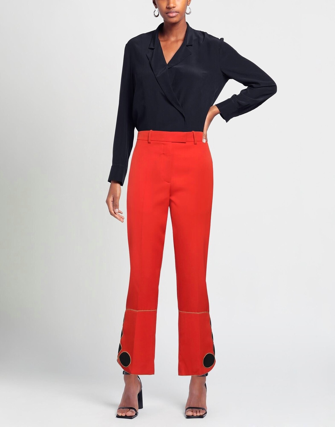 Шерсть, декорирование, однотонное изделие с аппликациями, завышенная талия, зауженные брючины, классический крой, застежка на крючки, застежка-молния, множество карманов, химчистка, нельзя сушить в стиральной машине, не отбеливать, брюки чинос
