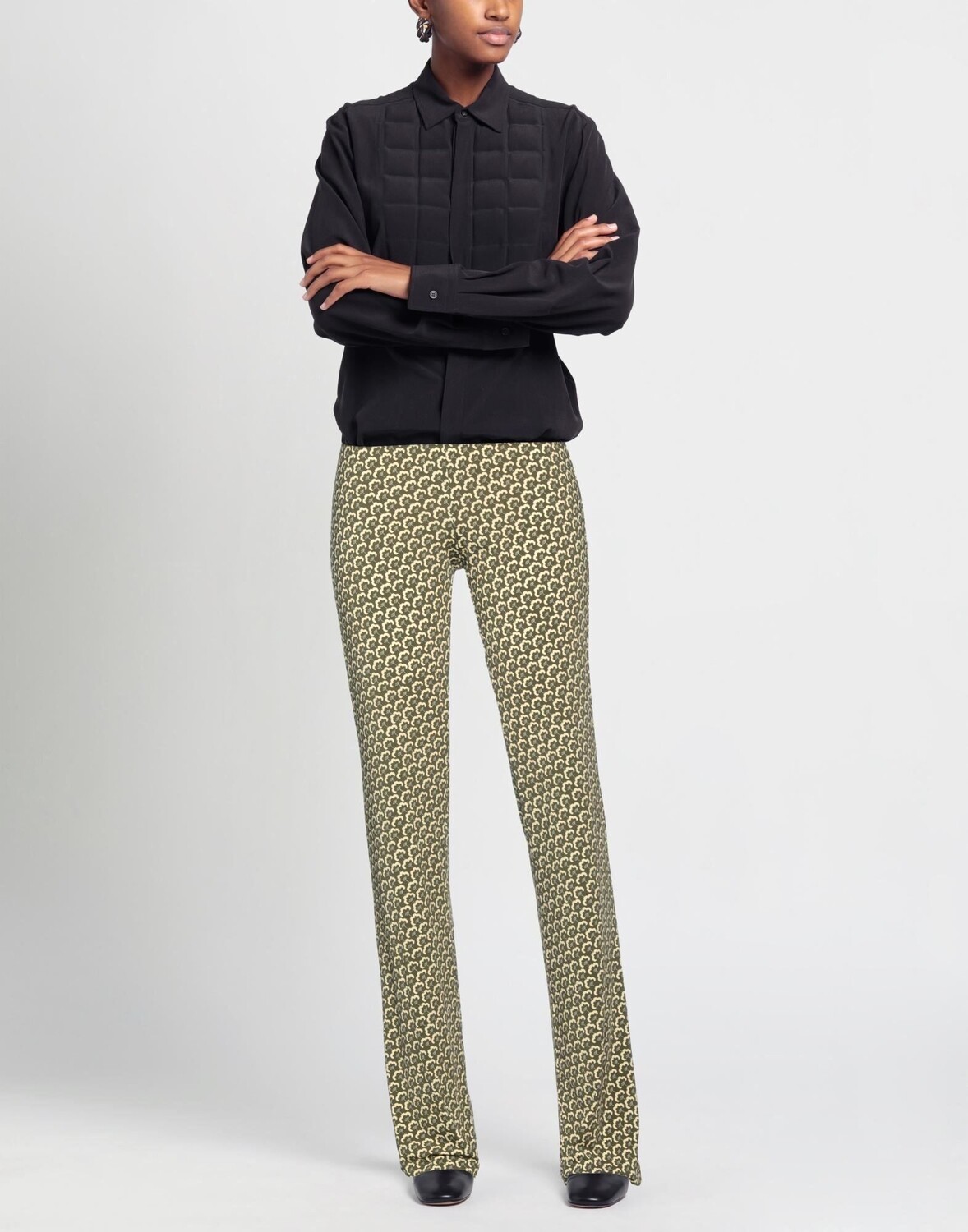 Синтетический трикотаж, без аппликаций, цветочный принт, средняя посадка, прямой крой, классический крой, без карманов, стрейч, брюки